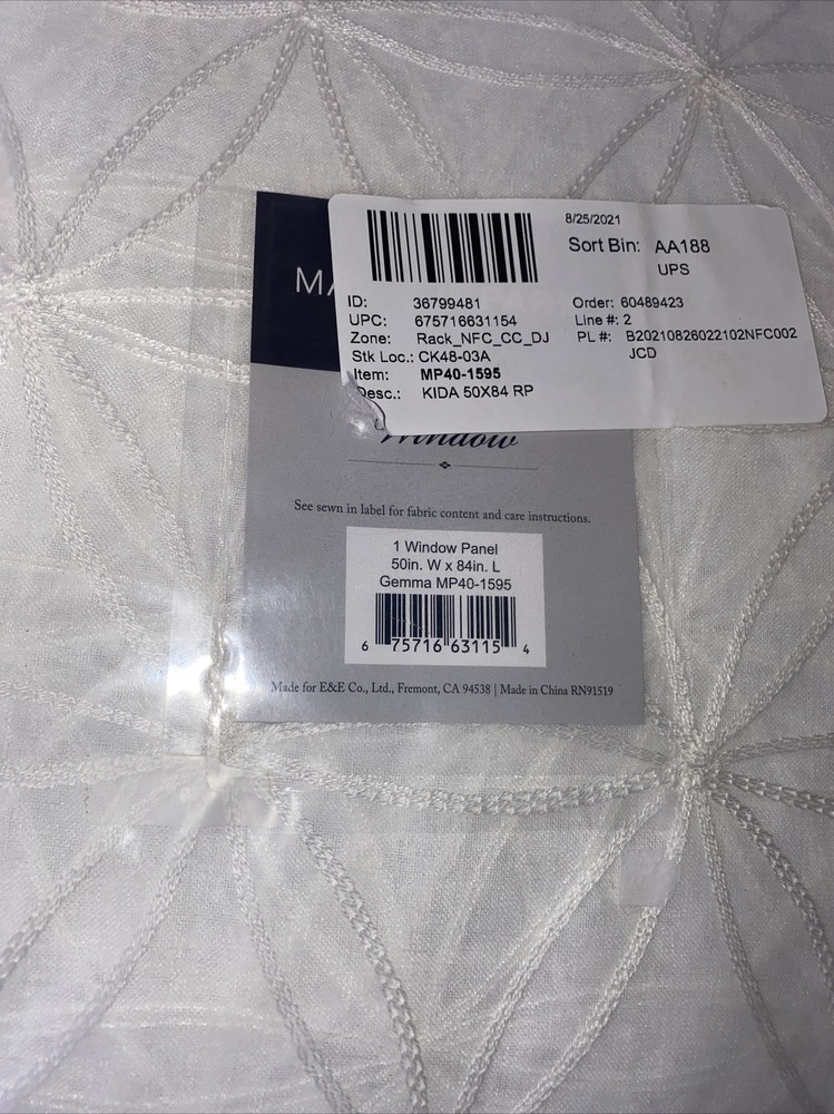 Madison Park Sheer Embroidered Window Curtain With White Finish 50x84....