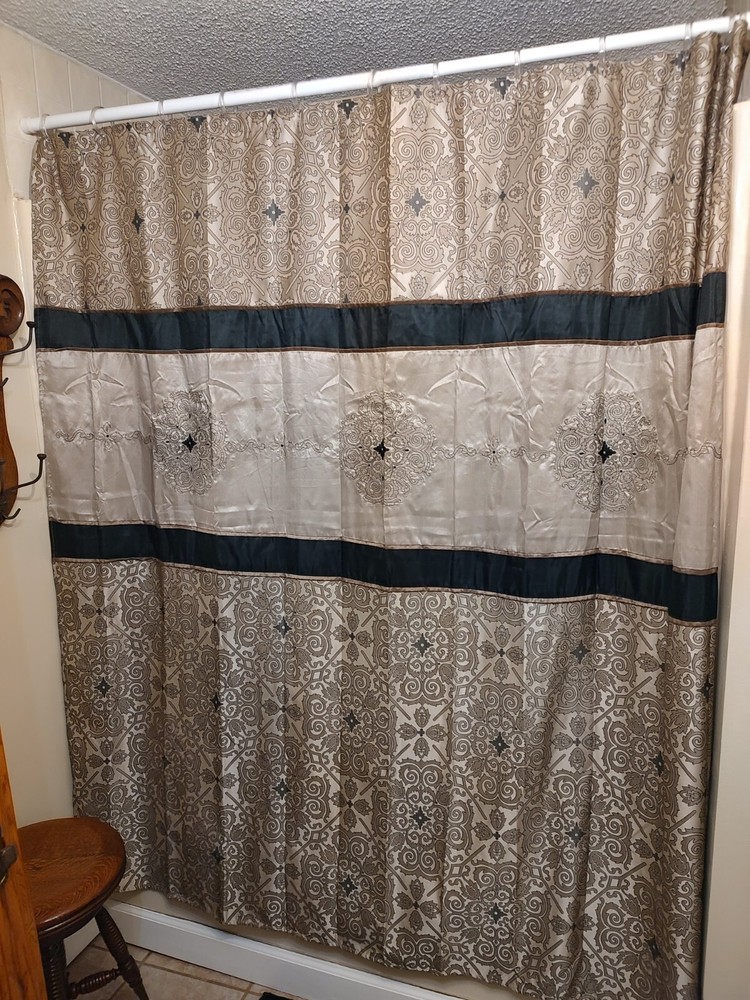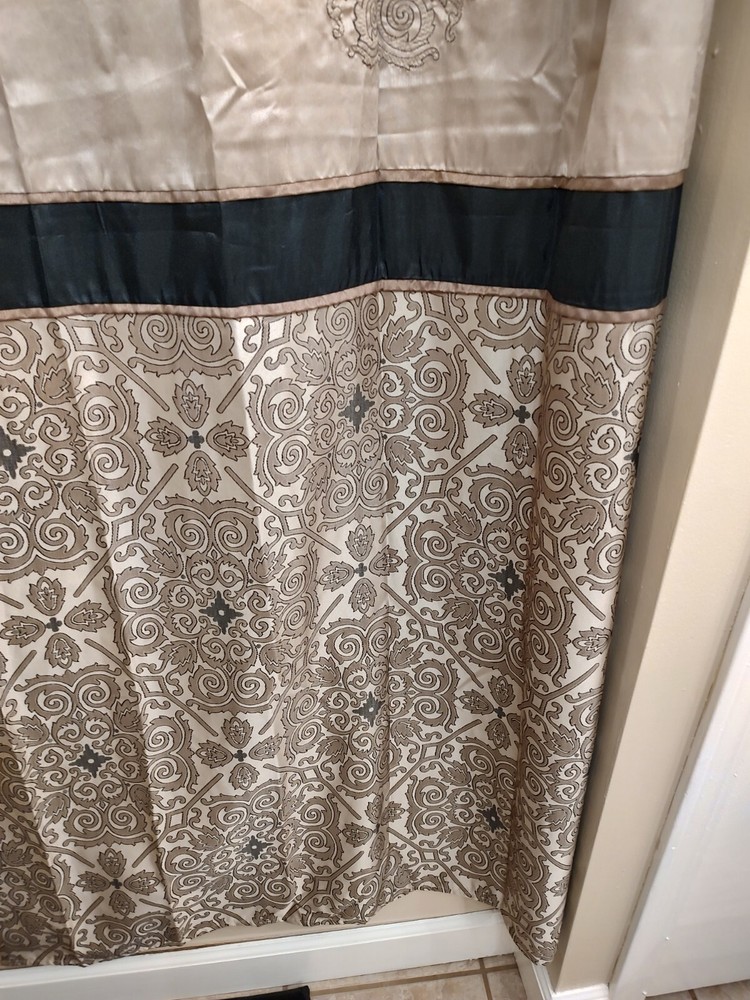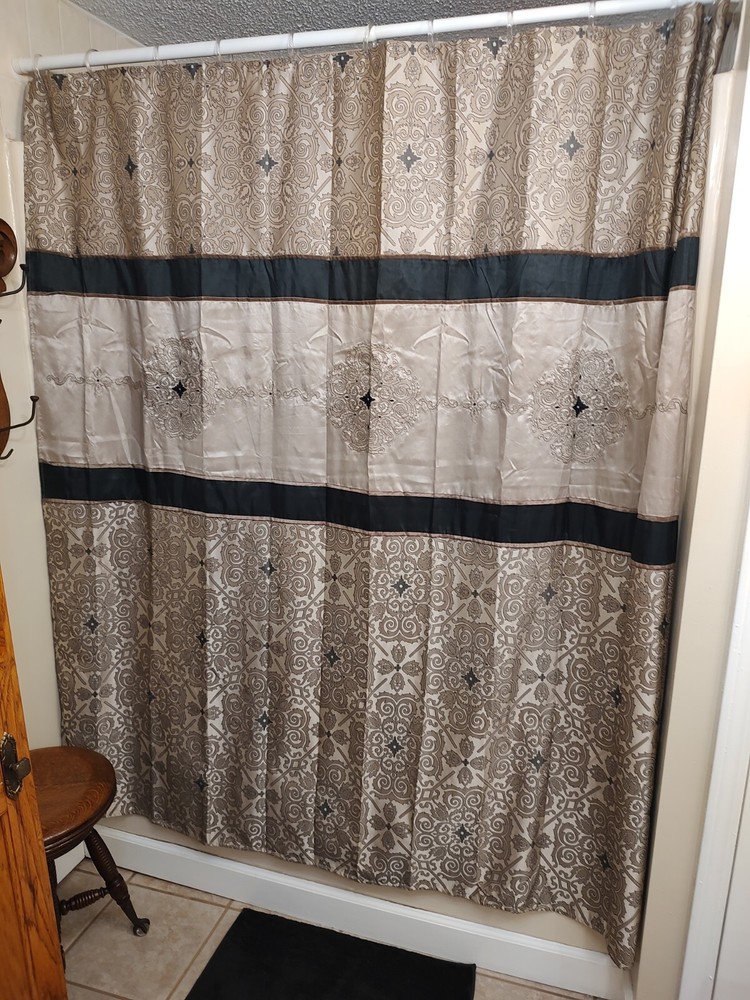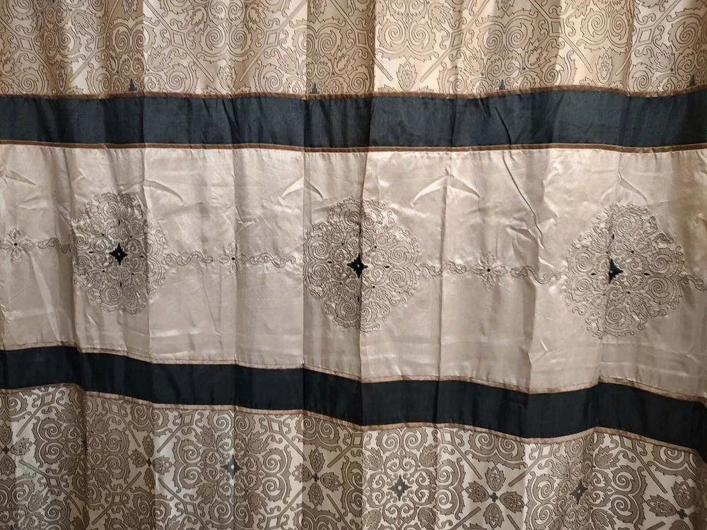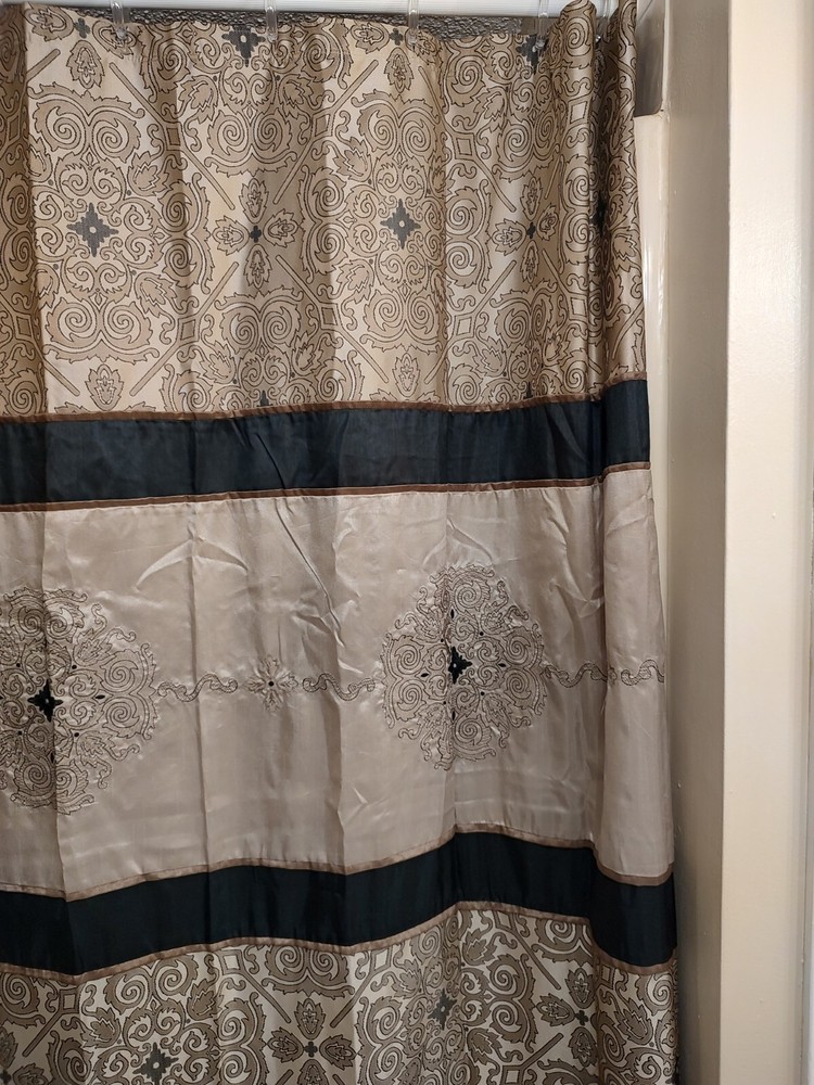 Add a touch of modern elegance to your bathroom with this Madison Park shower curtain set. The geometric pattern in black and tan brown colors is made of polyester material with a textured fabric that is both stylish and durable. The curtain has reinforced hook holes and a reinforced top header for easy installation and use. This fabric curtain is suitable for showers and comes in a size of 72 inches in both length and width. It is machine washable and ironable, making it easy to maintain. Upgrade your bathroom decor with this Madison Park shower curtain set, perfect for any modern household.