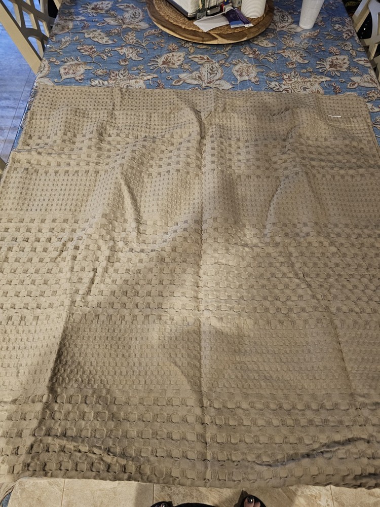 Selling this lightly used shower curtain. It's a great material the length is 72x72 . It's in clean exellent condition....