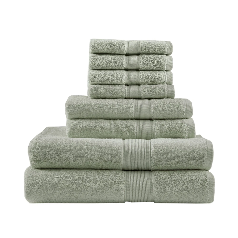 Store Categories Store Categories Bedding Comforters Decorative Pillows Duvet Covers Quilts & Coverlets Sheets Blankets & Throws Mattress Pads Pillows Home Decor Window Treatments Wall Art Home Accents Furniture Beds Dining Seating Ottomans & Benches Accent Chairs Accent Tables Dining Tables Sofas Bath Bath Robes Shower Curtains Towels Bath Rugs Bath Accessories Apparel Pajama Sets Nightgowns Rugs Rugs & Carpets Lighting Lamp Pendant Other Product Overview Details Description: Provide a fresh update to your bathroom with our luxurious Madison Park Signature 800GSM Cotton 8PC Bath Towel Collection. This spa-like quality towel set is made of premium long staple cotton that is highly absorbent and creates a luxuriously soft feel, while the double ply loop construction increases thickness, absorbency, and ensures less lint. Each towel is finished with a silvadur antimicrobial treatment providing built in freshness protection, inhibiting growth of odor causing bacteria, and keeping linen newer, longer. Active for multiple washes, this treatment delivers long-lasting durable odor protection performance. In addition, these towels are also made in green by OEKO-TEX certified, meaning they do not include any harmful substances or chemicals while also using sustainable processes and socially responsible working conditions, for the best in quality comfort and wellness. Finished with double-stitched side hems for long lasting durability, these towels are available in a variety of colors; to easily match your decor with a complimenting color or mix and match to create a distinctive style. Set includes: 2 generously oversized 30x54" bath towels, 2 standard 16x28" hand towels, and 4 standard 13x13" wash towels. Coordinate bath sheet set in selected colors, is available and sold separately. See below Size include: 2 Bath Towels:30"W x 54"L (2)2 Hand Towels:16"W x 28"L (2) 4 Wash Towels:13"W x 13"L (4) Care Instruction: Wash before first use. Machine wash cold on gentle cycle with like colors. Only use non-chlorine bleach when needed. Avoid contact with products containing benzoyl peroxide. Do not wash with sharp items that may pull the towel fibers, such as zippers or hooks. To maintain the quality and performance of your towels, avoid the use of fabric softeners and dry sheets. Tumble dry low, remove promptly. Do not iron. Before use, simply shake towels to restore fluff and pile. Material Details: 100% cotton Bedding Comforters Decorative Pillows Duvet Covers Quilts & Coverlets Sheets Blankets & Throws Mattress Pads Pillows Home Decor Window Treatments Wall Art Home Accents Furniture Beds Dining Seating Ottomans & Benches Accent Chairs Accent Tables Dining Tables Sofas Bath Bath Robes Shower Curtains Towels Bath Rugs Bath Accessories Rugs Rugs & Carpets Lighting Lamp Pendant Product Overview Product Details Description: Provide a fresh update to your bathroom with our luxurious Madison Park Signature 800GSM Cotton 8PC Bath Towel Collection. This spa-like quality towel set is made of premium long staple cotton that is highly absorbent and creates a luxuriously soft feel, while the double ply loop construction increases thickness, absorbency, and ensures less lint. Each towel is finished with a silvadur antimicrobial treatment providing built in freshness protection, inhibiting growth of odor causing bacteria, and keeping linen newer, longer. Active for multiple washes, this treatment delivers long-lasting durable odor protection performance. In addition, these towels are also made in green by OEKO-TEX certified, meaning they do not include any harmful substances or chemicals while also using sustainable processes and socially responsible working conditions, for the best in quality comfort and wellness. Finished with double-stitched side hems for long lasting durability, these towels are available in a variety of colors; to easily match your decor with a complimenting color or mix and match to create a distinctive style. Set includes: 2 generously oversized 30x54" bath towels, 2 standard 16x28" hand towels, and 4 standard 13x13" wash towels. Coordinate bath sheet set in selected colors, is available and sold separately. See below Size include: 2 Bath Towels:30"W x 54"L (2)2 Hand Towels:16"W x 28"L (2) 4 Wash Towels:13"W x 13"L (4) Care Instruction: Wash before first use. Machine wash cold on gentle cycle with like colors. Only use non-chlorine bleach when needed. Avoid contact with products containing benzoyl peroxide. Do not wash with sharp items that may pull the towel fibers, such as zippers or hooks. To maintain the quality and performance of your towels, avoid the use of fabric softeners and dry sheets. Tumble dry low, remove promptly. Do not iron. Before use, simply shake towels to restore fluff and pile. Material Details: 100% cotton
