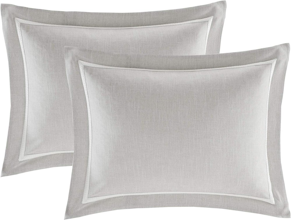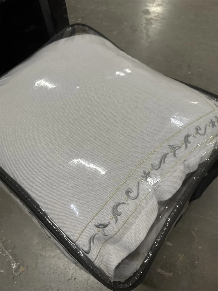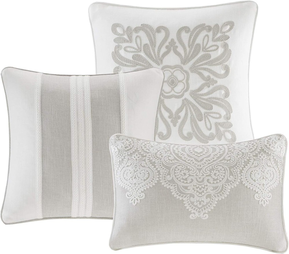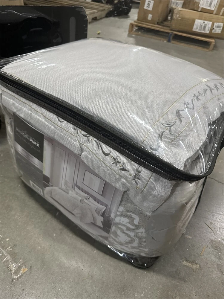 New, open package king size Madison Park Signature Manor. The package has been opened, but all pieces are included and are in new condition. 100% Microfiber Madison Park Signature's Barely Comforter Set provides a chic and charming update for the bedroom. Features a beautiful white chain stitch embroidery in an intricate damask pattern. The oversized and overfilled comforter uses and includes a removable duvet-style insert that is secured by inner ties and a hidden button closure. The comforter comes with a removable duvet cover and the decorative pillows have removable cover with hidden zipper that makes them easy to clean. Set includes: 1 Duvet Cover: 110"W x 96"L, 1 Comforter: 110"W x 96"L, 2 King Shams: 20"W x 36"L + 2"D, 3 Euro Shams: 26"W x 26"L, 3 Decorative Pillows: 22"W x 22"L/20"W x 20"L/14"W x 20"L Care instructions: Machine wash cold, gentle cycle, and separately. Do not bleach. Tumble dry low, remove promptly. Do not iron. Spot clean pillow. If there is no free movement in the washer or dryer, use large capacity commercial washer/dryer. Payment is due upon purchase. All items ship from a pet and smoke free home. Your item will be sent out within one business day of your purchase. I strive for 100% positive feedback. Please contact me with any problems before leaving feedback. Returns accepted only if the item is defective. I record all serial numbers prior to shipping. Thank you for looking, and have a great day!