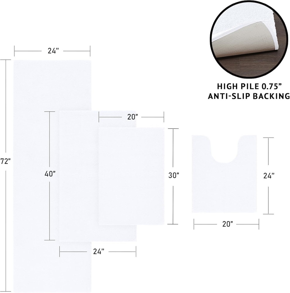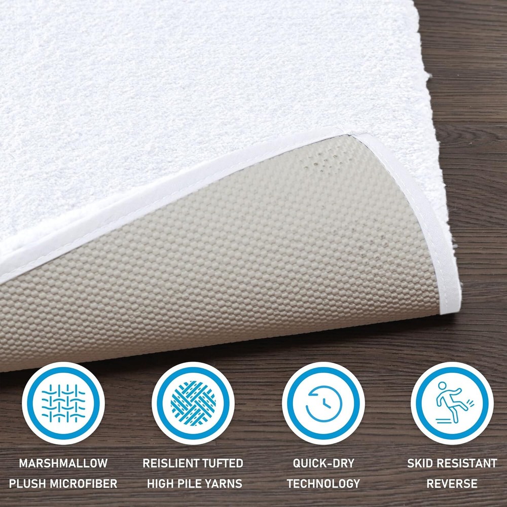 Product Features One bath rug 20" x 30" Features non-skid heavy duty latex backing to keep rug stay in place Quick-dry technology Resilient microfiber tufted pile Spa quality Fade resistant colors Asian American & Pacific Islander Owned, Woman Owned Polyester Machine Washable Imported Madison Park Signature Marshmallow Bath Rug - Plush Polyester, Solid White Product Details: Brand: Madison Park Signature Material: 100% Polyester Color: Solid White Pattern: Solid Shape: Rectangle Certification: OEKO-TEX Certified Care Instructions: Machine Washable Description: Elevate your bathroom's aesthetic with the Madison Park Signature Marshmallow Bath Rug. The rug's plush 100% polyester material provides a soft, marshmallow-like feel under your feet, perfect for those luxurious spa-like moments. Its solid white color offers a clean, modern look that complements any bathroom decor. OEKO-TEX certified, this bath rug ensures that it meets high standards of safety and sustainability, giving you peace of mind with every step. The rectangular shape fits perfectly in any bathroom size, and with machine washable care instructions, maintaining this piece is a breeze. Experience both comfort and style with this all-season bath rug.
