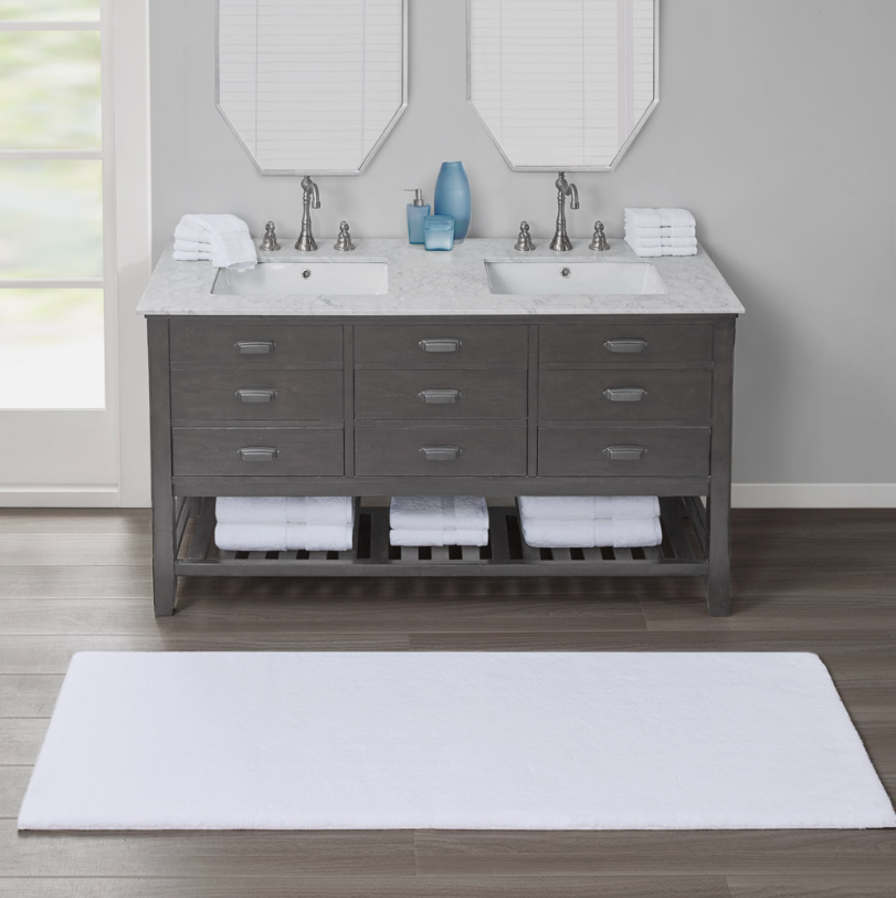 Description: Experience the true feeling of luxurious comfort with our Madison Park Signature Marshmallow Bath Rug. This spa-quality bath rug is made of resilient high pile tufted microfiber for an incredibly plush feel, while also featuring a proprietary quick-dry technology keeping rug feeling soft and dry each time you step onto it. The heavy duty non-skid latex backing helps keep the rug in place throughout the day, while also making the rug skid resistant for better safety. This luxurious bath rug is also OEKO-TEX certified, meaning it does not contain any harmful substances or chemicals to ensure quality comfort and wellness. Machine washable for easy care, each bath rug comes in soft fade resistant colors for long lasting and multiple sizes to help complete any bathroom size and decor! 24x40" Size include: 1 Rug:24"W x 40"L Material Details: 100% polyester