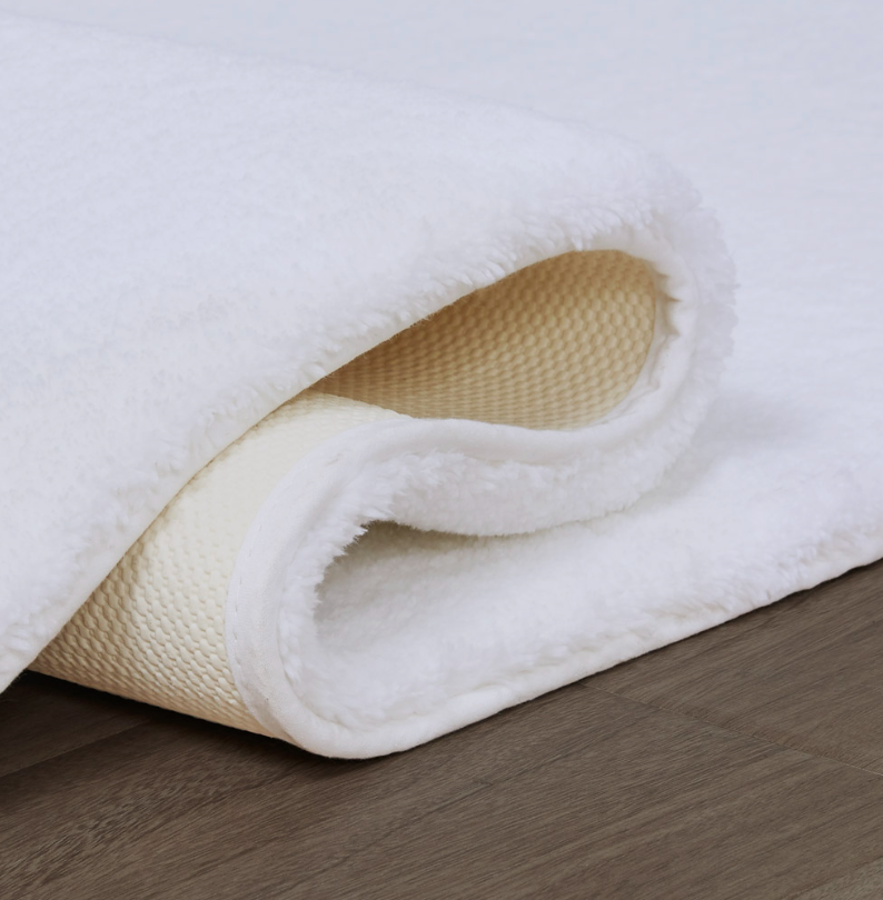 Stepping out of the shower onto this rug is pure bliss! It's incredibly soft and plush, like walking on a cloud. I love that it dries super fast and the non-slip backing keeps it securely in place. It feels so luxurious and has completely upgraded my bathroom. Highly recommend
