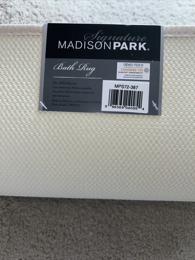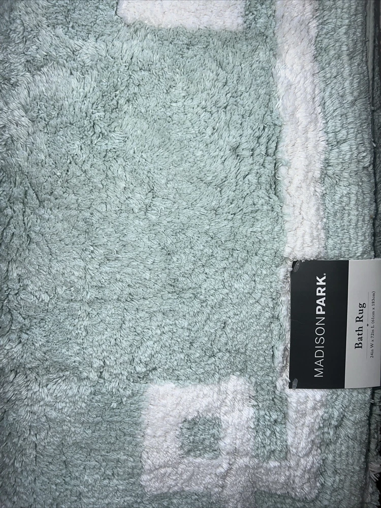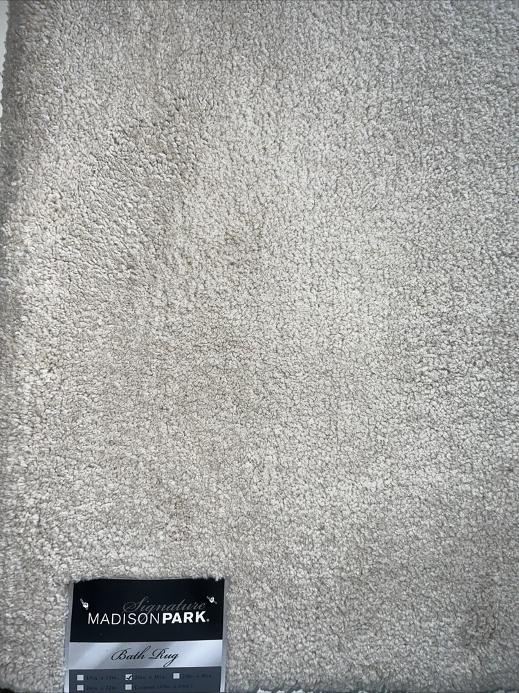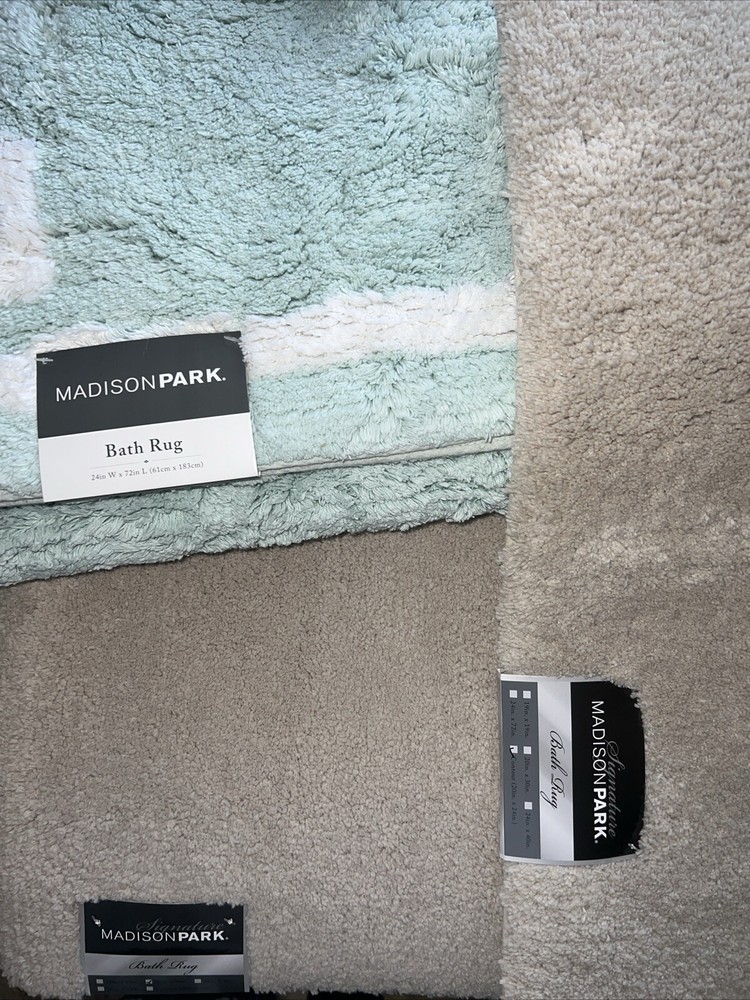 Contour Bath Rug, Taupe, NWT: Once you experience the feel of our Marshmallow Bath Rug by Madison Park Signature you'll wonder how you went so long with buying one. This heavyweight spa quality rug has a proprietary quick dry technology that keeps the rug feeling dry each time you step onto it. Made from a resilient tufted microfiber, this durable rug will withstand years of daily usage as well as numerous machine washings. The skid resistant backing helps to keep the rug from shifting around on your bathroom floor. Best of all, the Marshmallow rug comes in several fade resistant colors along with several size options to fit to fit any space. One bath rug 20" x 24" Contour Features non-skid heavy duty latex backing to keep rug stay in place Quick-dry technology Resilient microfiber tufted pile Spa quality Fade resistant colors Asian American & Pacific Islander Owned, Woman Owned Polyester Machine Washable Imported Marshmallow Bath Rug, 20" x 30", Taupe, NWT: One bath rug 20" x 30" Features non-skid heavy duty latex backing to keep rug stay in place Quick-dry technology Resilient microfiber tufted pile Spa quality Fade resistant colors Evan Tufted Cotton Bath Rug, 24" x 72", Seafoam, NWT: The Madison Park Evan Rug provides comfort and simplicity in your space. Made from 100% cotton, this high pile tufted rug provides bold color and a simple white border for a hotel look right in your own home. The large 24x72" runner size is perfect for a double sink vanity. Each rug sold individually 24" x 72" STANDARD 100 by OEKO-TEX® certified. Tested in an independent lab and verified to be safe from harmful substances [07.JA.52812 | HOHENSTEIN HTTI] Asian American & Pacific Islander Owned, Woman Owned 100% cotton tufted, 240gsm Machine Washable Imported OEKO-TEX® Standard 100