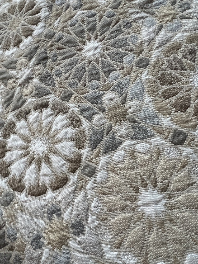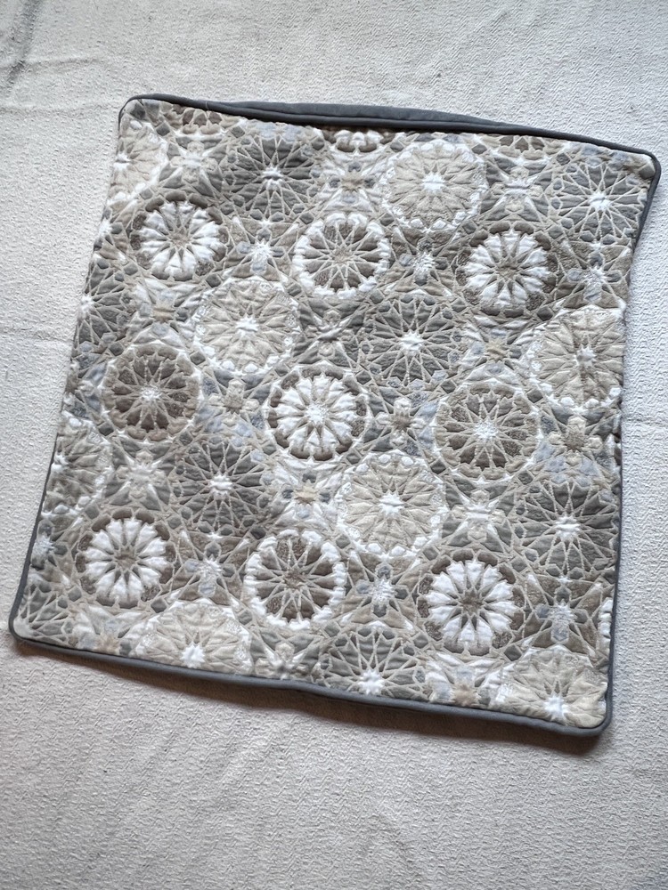 Madison Park Signature Euro Sham Mosaic look patterned matelasse front in grays, blue-gray, beige and white. Solid back. Button closure. Dry clean only. Excellent used condition. Clean. Thoughtfully packaged Shipped USPS 122823-4