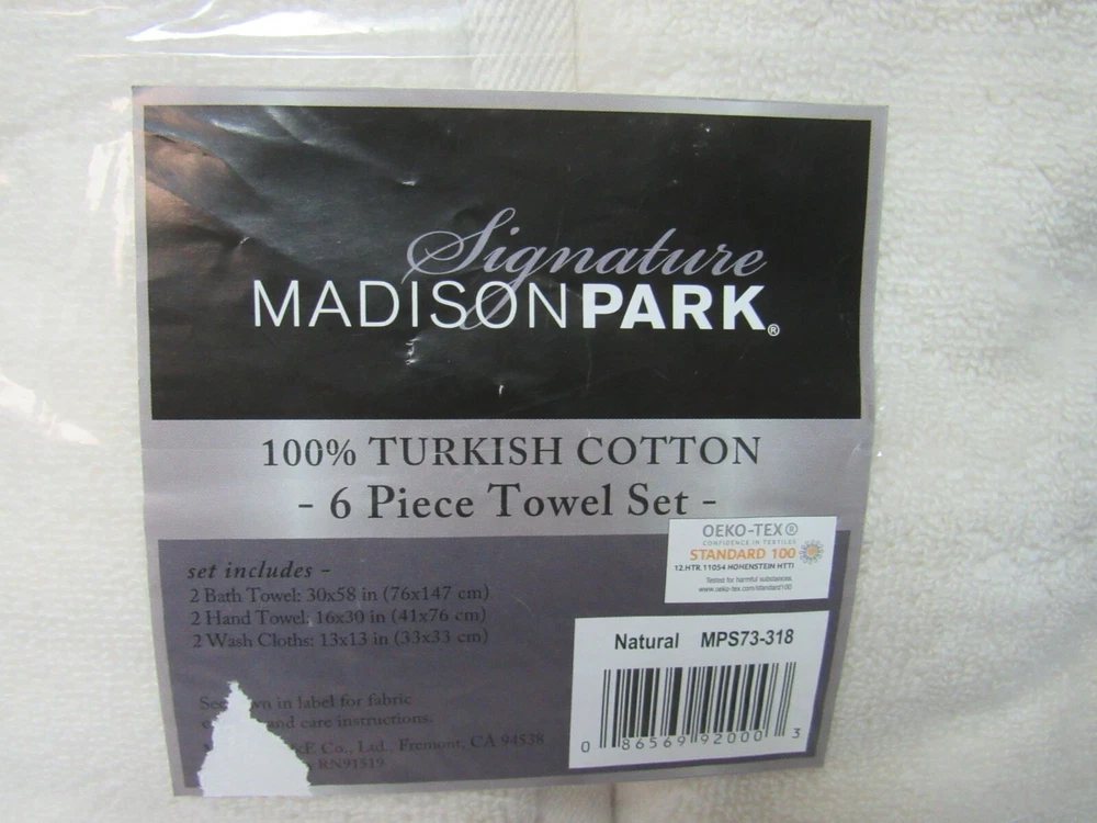 Madison Park Signature Turkish Cotton Solid 6-pc. Solid Bath Towel Set T4101624 Step up your bathroom style with the Madison Park Signature Turkish Cotton 6 Piece Towel Set. This luxurious towel set is made from highly absorbent 100% Turkish cotton, for an incredibly soft feel. These 623GSM bath towels are thick and generously sized to give your bathroom a spa-like update, while the Turkish construction creates stronger and smoother cotton threads to produce a superior quality towel. Turn your bathroom into a relaxing retreat with this Turkish towel set. Set includes 2 bath towels, 2 hand towels, and 2 wash towels Bath towels (2) measure 30" x 58", hand towels (2) measure 16" x 30", wash towels (2) measure 13" x 13" This luxurious towel set is made from highly absorbent cotton for an incredibly soft feel These bath towels are thick and generously sized to give your bathroom a spa-like update, while the Turkish construction creates stronger and smoother cotton threads to produce a superior quality towel Cotton Machine washable Imported