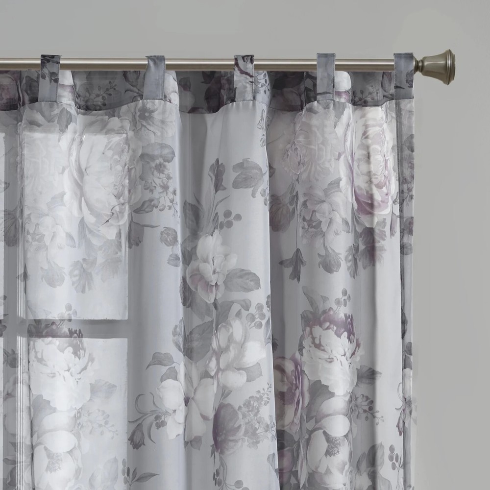 Madison Park Simone Floral Design Sheer Single Window Curtain, 50" x 95", Gray 100% Polyester The Madison Park Simone Printed Floral Voile Sheer brings a soft and romantic touch to your home decor. 1 Voile Sheer Panel: 50"W x 95"L COLOR// Gray 22G706-11 22G706-12 22G706-13 22G706-14 22G706-20