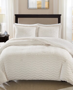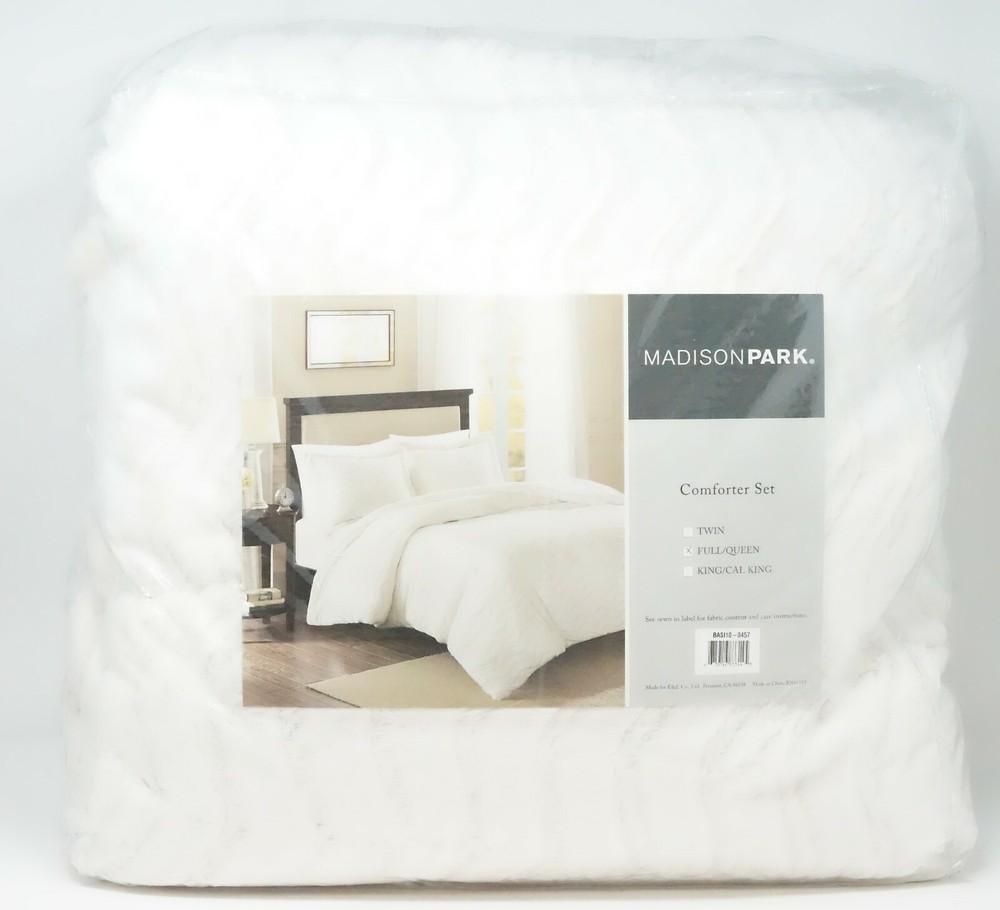 Brand New - Missing Shams Color: Ivory Size: Full / Queen Add warmth and comfort to your bed with the plush Sloan reversible comforter set from Madison Park. The faux fur fabric is incredibly soft and features a chevron pattern for added texture and dimension. Set includes: comforter (90" x 90") and two standard shams (20" x 26") Down alternative filling Polyester Machine washable Imported