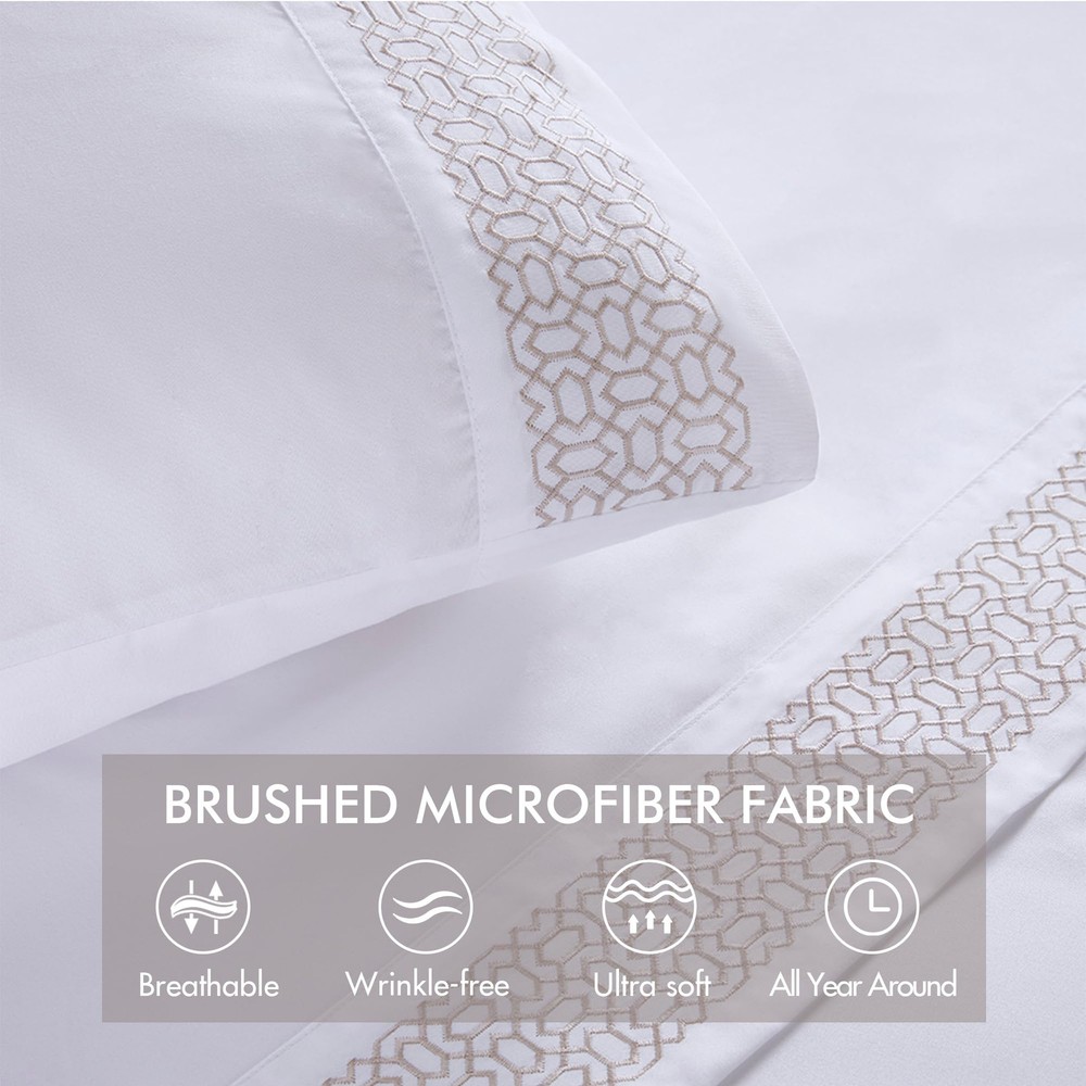 These sheets are incredibly soft and cozy—perfect for a good night's sleep! The embroidered hem adds a touch of elegance, and the deep pockets fit my mattress perfectly. Love that they’re OEKO-TEX certified too—great quality at an affordable price. Highly recommend!