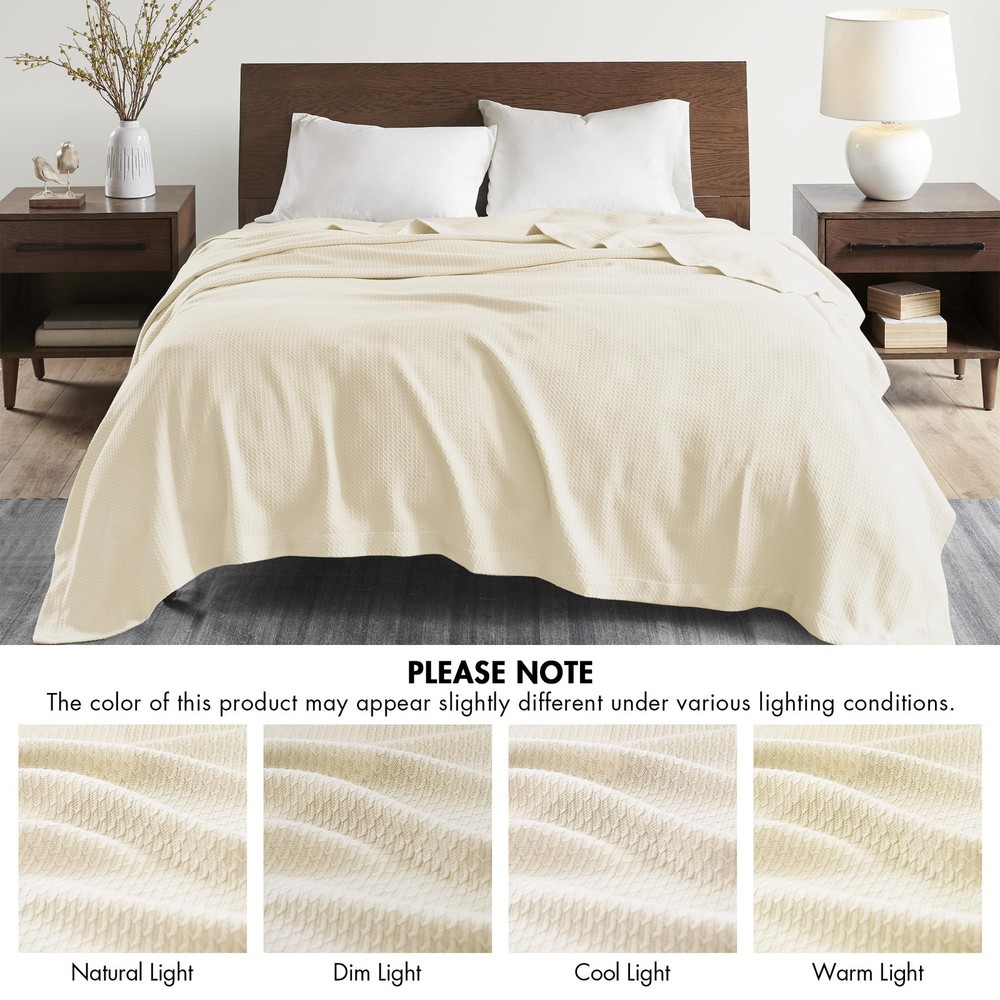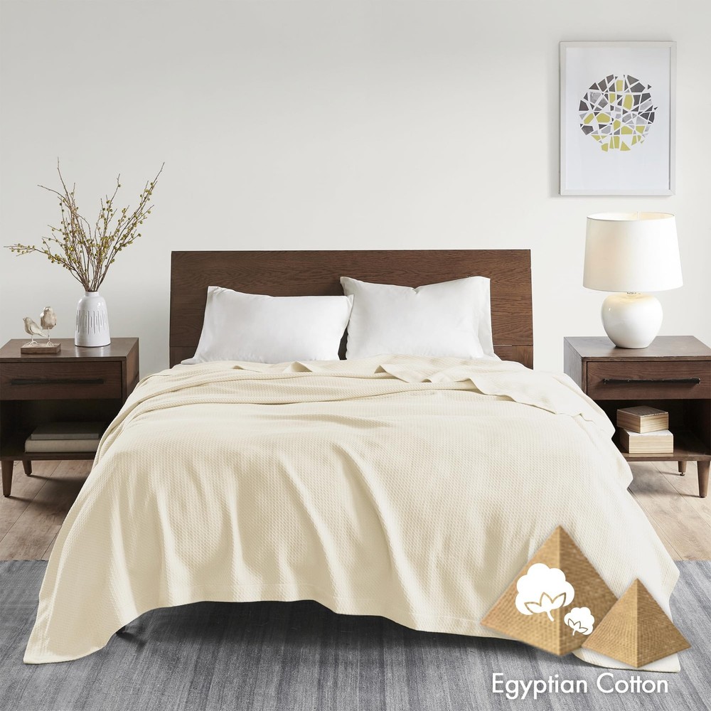 Immerse yourself in an exceptionally comfort of our 100% Certified Genuine Egyptian Cotton Bedding Blanket featuring super soft and breathable fabric for year round comfort Our premium quality Egyptian cotton blanket is tightly woven blanket to reduce piling and snagging for enhanced durability for the years to come Premium quality blanket Oeko-Tex Certified, includes no harmful substances or chemicals ensuring quality comfort and wellness 1 Full/Queen Size Blanket: 90"W x 90"L For you convenicend it's machine wash cold, gently and separately. Do not bleach. Tumble dry low. Remove promptly