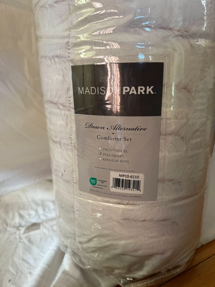 RETAIL PRICE $299.00 BEST PRICE GUARANTEED! Brand: Madison Park Size: Queen Color: Pink/White Material: Faux Fur Condition: NEW WITH TAGS 100% Long Faux Fur to Mink Sleep in the pure softness and comfort of the Madison Park Gia Back Print Long faux fur Comforter Mini Set. The ultra-soft blush comforter brushed faux fur on the face that flips to a soft mink reverse, for a luxurious look and feel. Long faux fur design comforter provides exceptional warmth and comfort. Set includes: 1 Comforter: 90"W x 90"L, 2 Standard Shams: 20"W x 26"L + 2"D Care instructions: machine washable