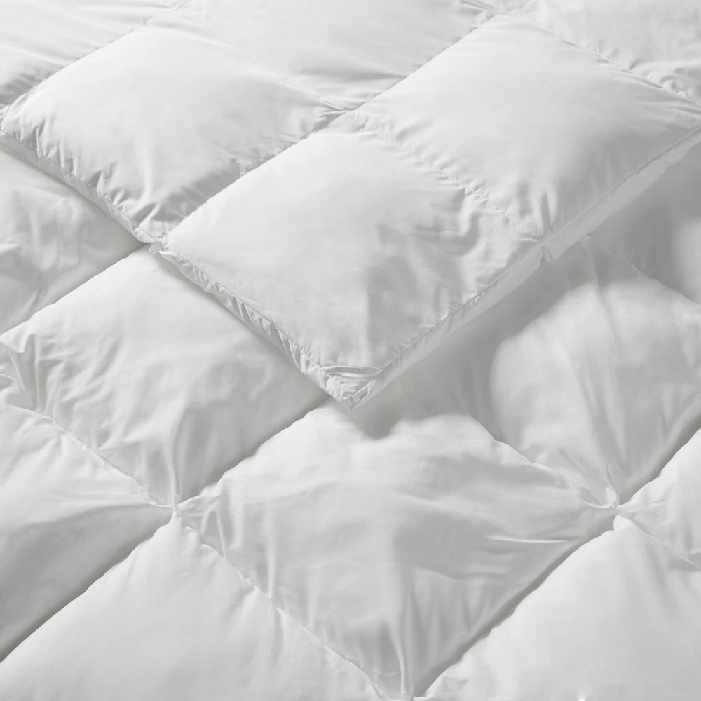 Madison Park Soft Puffed Overfilled Fluffy Down Alternative Comforter Queen King DESCRIPTION Experience a new dimension of comfort like never before with this luxuriously soft and delightfully fluffy down alternative comforter. This comforter is made from high density 100% polyester microfiber for ultimate coziness, with a 3D puff stitching design for an airy cloud-like look. It’s perfectly overfilled, giving it an extra-lofty appearance that will inspire sweet dreams as soon as you slip into bed. Jump tack quilting design ensures even distribution of fill throughout your comforter, while corner loops attach it firmly to your duvet cover. Its heavy filling makes it especially warm in cold winter months, so you can stay snug and relaxed all night long. For optimal care, it's recommended you dry clean or spot clean this high quality product. Pair it with our Stay Puffed pillow protector for a complete look. This comforter is also OEKO-TEX certified, meaning it does not contain any harmful substances or chemicals. FEATURES • 100% polyester high density microfiber shell with poly fiber filling • 3D puff stitching for an airy cloud-like look • Overfilled for an extra-lofty look • Jump tack quilted design ensures even distribution of the fill • Heavy filling for keeping warm during cold winter months • Corner loops secure insert to duvet covers • Matching pillow protector is available and sold separately • Dry clean or spot clean • Oeko-Tex Certified, includes no harmful substances or chemicals MATERIAL Shell: 100% Polyester microfiber Fill: Down alternative polyester fiber Available Sizes: Full/Queen Comforter: 90"W x 90"L King/California King Comforter: 104"W x 90"L