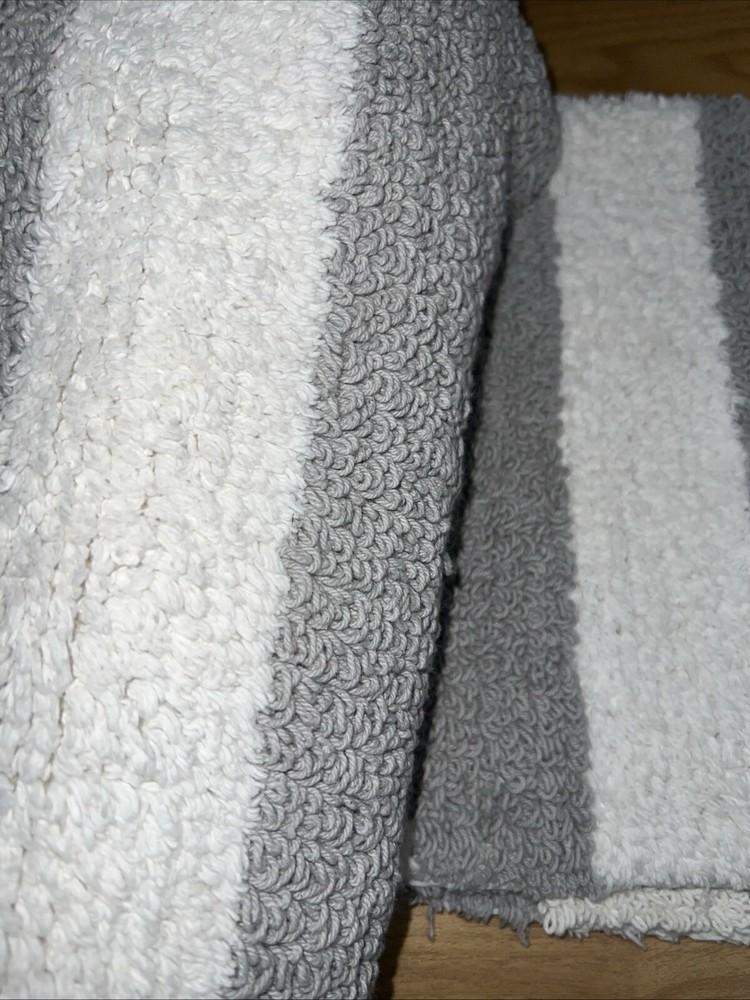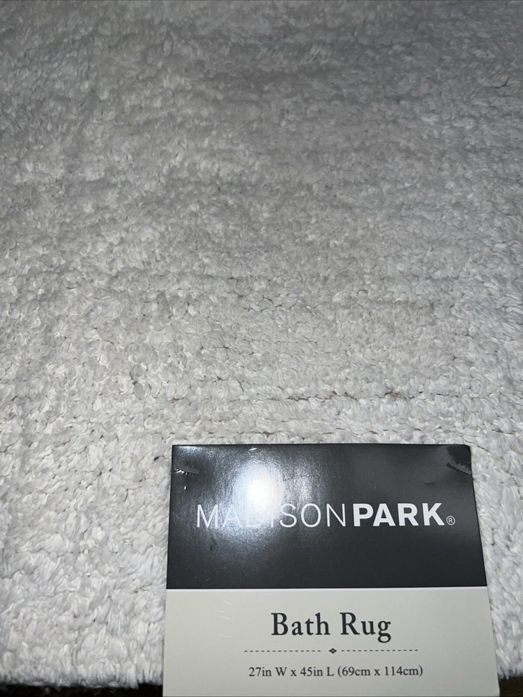 Put a luxe spa-quality finish on your bathroom's decor with the soft, ultra-absorbent cotton and refreshing stripes of this reversible bath rug from Madison Park. Product Features Dimensions: 27" x 45" Fabric: all cotton 160 grams per square meter Colors: white ground with stripe accents; reverses to solid white ground Asian American & Pacific Islander Owned, Woman Owned Machine washable Color: Grey Imported RG4 MBN27