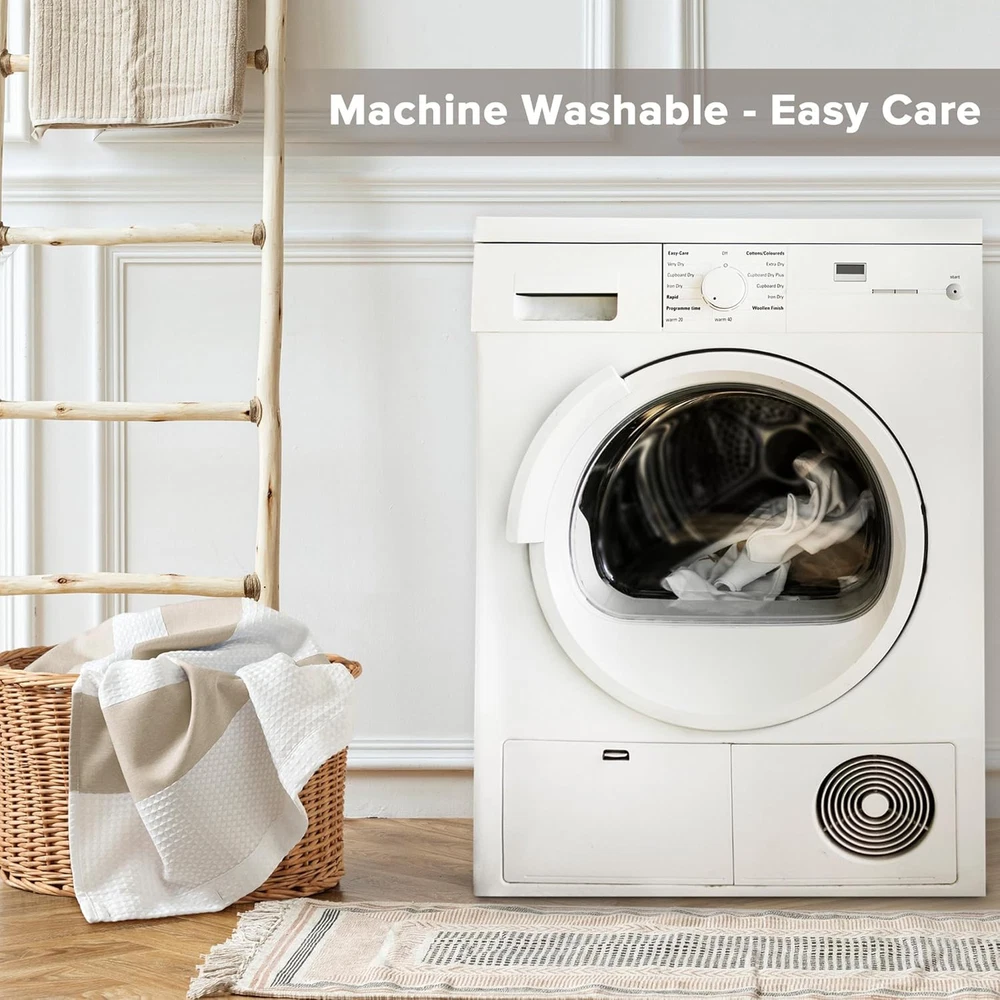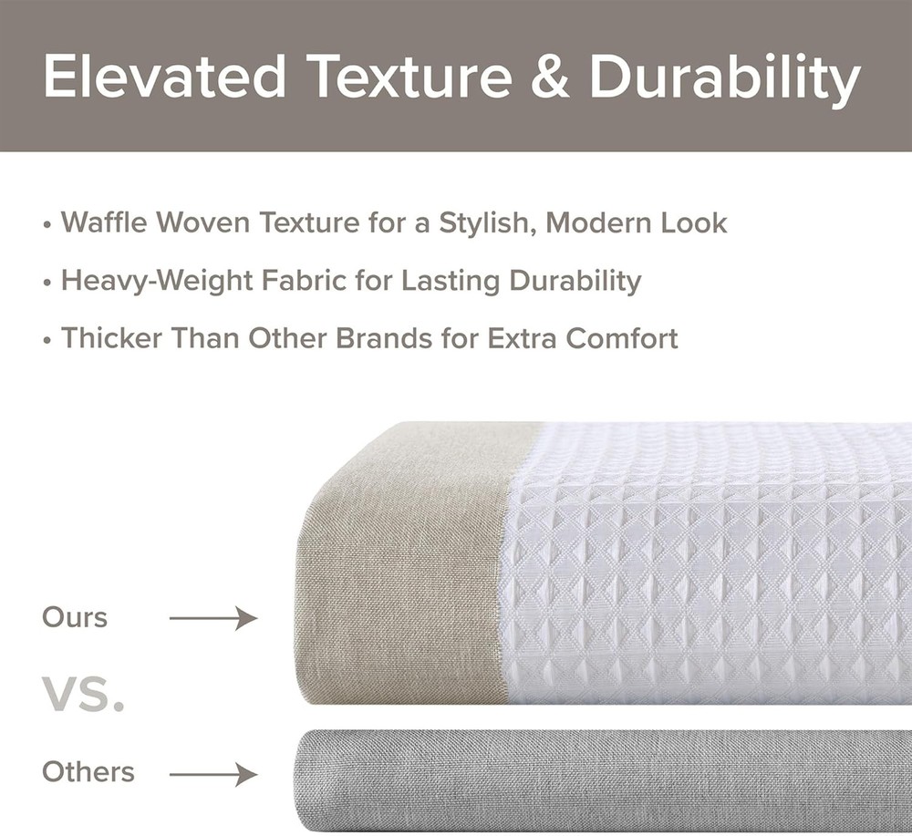 Madison Park Spa Waffle Shower 54"W x 78"L (Pack of 1), Taupe Product Details Brand: Madison Park Color: Taupe Material: Polyester Product Dimensions: 78"L x 54"W Opacity: Light-filtering Special Feature: Portable, Water Repellent, Long Lasting, Washable Room Type: Bathroom Style: Modern Pattern: Striped Theme: Modern,Stripe,Farmhouse Curtain Form: Shower Curtain Top Style: Button hole Size: 54"W x 78"L (Pack of 1) Included Components: 1 Shower Curtain Recommended Uses For Product: Indoor Specific Uses For Product: Room Darkening, Privacy, Sun Protection, Shower, Decorative Weave Type: Waffle Seasons: All Season Hanging Method: Tab Top Number of Items: 1 Product Care Instructions: Machine Wash Cold, Gentle Cycle, And Separately. Do Not Bleach. Tumble Dry Low, Remove Promptly. Do Not Iron. If There Is No Free Movement In The Washer Or Dryer, Use Large Capacity Commercial Washer/Dryer. Lining Description: Polyester Package Weight: 0.64 Kilograms Water Resistance Level: Water Repellent Fabric Type: 100% Polyester Unit Count: 1.0 Count Item Thickness: 0.13 Inches Model Name: Shower Curtain, Waffle Weave, Pieced Design Fabric Shower Curtain with 3M Scotchgard Moisture Management, Manufacturer: Madison Park Item Weight: 1.42 pounds Department: Home Country of Origin: China Item model number: MP70-4977 Is Discontinued By Manufacturer: No Volume: 1 Cubic Inches Assembly required: No Number of pieces: 1 Batteries required: No 100% Polyester 1 shower curtain Available Size: 54"W x 78"L 190gsm polyester, 3M water-repellent Scotchgard treatment Machine washable Color: Taupe Update your space with the Madison Park Spa Waffle Shower Curtain with 3M Treatment. Featuring a fresh and updated stripe design, this stall shower curtain is made of a light heathered colored fabric pieced with a white waffle weave base creating a beautiful texture for the perfect spa touch to your small bathroom decor. A temporary 3M Scotchgard Moisture Managementkeeps your smal shower curtain looking newer, longer and is active for multiple washes. A waterproof liner is not included but still highly recommended to keep this stall size shower curtain in its best condition; Hooks and Rod also not included and should be purchased separately. Various colors and sizes are available to fit any bathroom space. Size shown in image is standard 72x72", stripe design may vary per all other sizes. Complete the collection with coordinate Spa Waffle Bath Towel and Spa Cotton Bath Rug, available and sold separately.