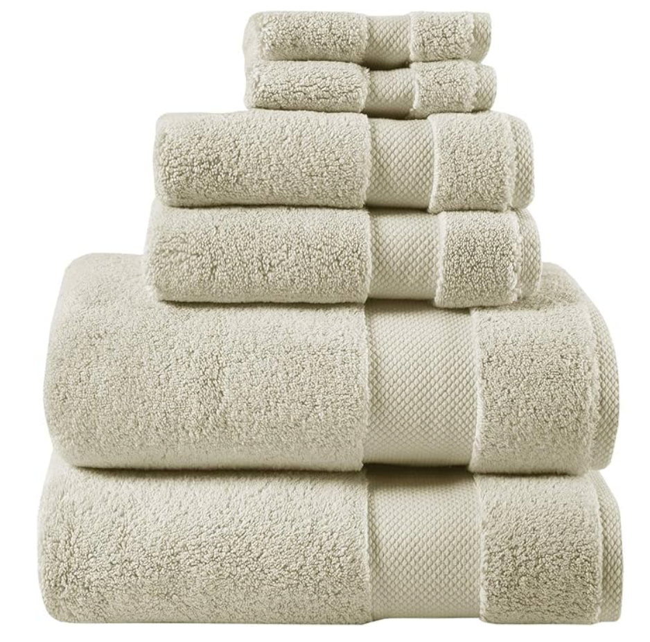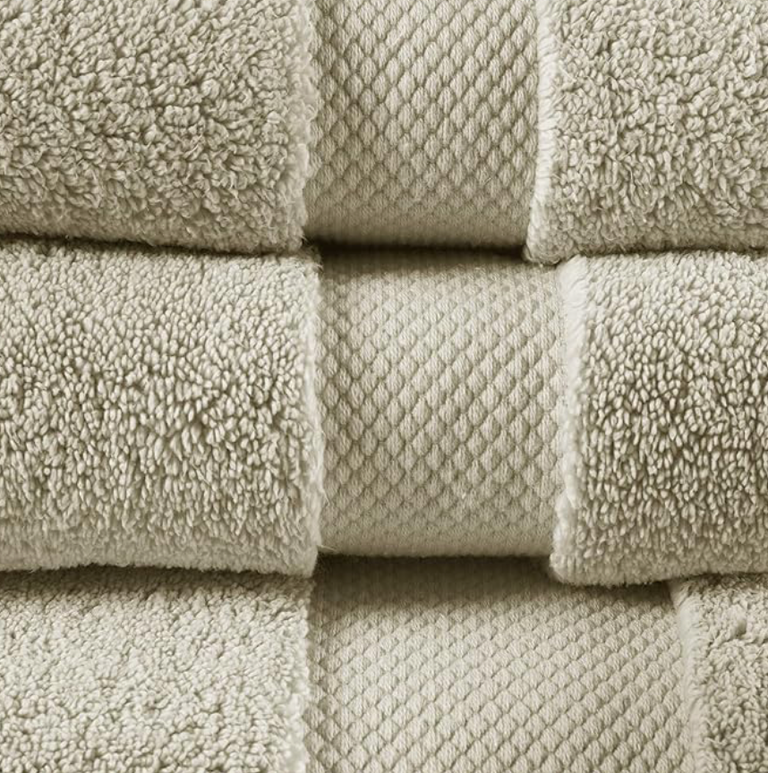 The Madison Park Splendor 1000gsm 100% Cotton 6 Piece Towel Set in OS/Taupe features high-quality bath towels, hand towels, and wash cloths made from luxurious cotton material. This set includes everything you need for your kitchen and bathroom in a stylish and elegant design. The towels are soft, absorbent, and durable, making them perfect for daily use and adding a touch of luxury to your home decor.