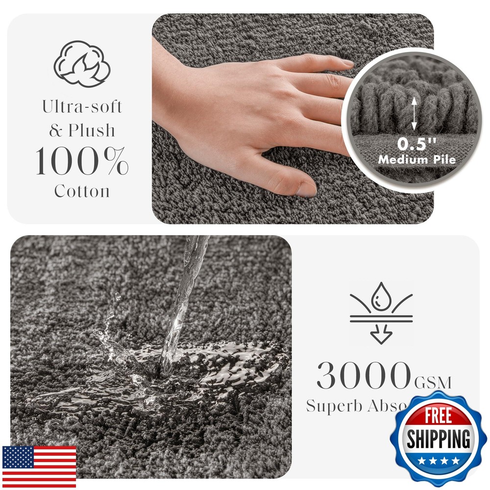 Madison Park Splendor Reversible 100% Cotton Tufted Bathroom Rug-3000 GSM Hotel Quality Luxurious Plush Medium Pile Bath Mat Absorbent, Quick Dry, Shower Room Décor, 24x72, Charcoal Features Heavy 3000GSM - This 100% cotton bath rug features a superior tufted top construction in a heavy 3000gsm weight, that creates an incredibly dense and plush look and feel Luxurious Comfort - The Madison Park Splendor 100% Cotton Tufted 3000 GSM Reversible Bath Rug brings incredible comfort and softness to your bathroom décor Reversible 2-in-1 - Bath rug is also fully reversible and machine washable for easy care. A non-slip mat is not included and highly recommended to keep the bath rug safe in place Size - 1 Bath Rug 24"W x 72"L, medium pile 0.5" height CARE - Ultra-plush with a heavier weight—frequent washing is unnecessary. Vacuum or shake the rug vigorously to remove dust and debris. When needed, wash separately on a low cycle. Avoid high temperatures to prevent shrinkage Shipping Free & Fast Shipping: We offer free shipping to most of the USA with a normal delivery time of 3-7 days. However, due to the current situation, additional delivery time (up to 3 weeks) may be required for some items. Alternative Carriers: We may use alternative carriers (e.g., USPS, FedEx, UPS) to ensure your package arrives safely and on time. Due to the use of multiple carriers, we are unable to provide a tracking number automatically. Handling Time: Orders are processed and shipped within 1-2 business days of receiving cleared payment. Shipping Restrictions: Shipping to Alaska, Hawaii, Puerto Rico, Guam, and other US territories may incur shipping charges or delivery restrictions. Please contact us before ordering, or your order can be refunded/cancelled. State Restrictions: Certain items may not be shipped to California due to state regulations. Contact for Tracking Updates: If you require tracking updates or have any concerns about the delivery of your order, please feel free to contact us, and we will be happy to assist you. Return Policy 30-Day Hassle-Free Returns: If you are not completely satisfied with your purchase, you can return the item for free within 30 days of receiving it for a full refund or exchange. Easy Return Process: Contact us, and we will provide you with a prepaid return shipping label and detailed instructions. No Restocking Fee: There are no restocking fees for returns. However, the buyer is responsible for return shipping costs if the return is not due to a seller's error. Refund Processing: Refunds will be processed within 1 business day of receiving the returned item in its original condition. Payment We accept all major credit cards, PayPal, and Apple Pay for your convenience. Your payment information is secure and encrypted to ensure a safe and seamless transaction. Please complete your payment within 3 days of purchase to avoid any delays in shipping. Feedback Your feedback is extremely important to us. We strive to provide the best products and customer service possible. If you are satisfied with your purchase, please take a moment to leave us a positive review. If you have any concerns or issues with your order, please contact us before leaving negative feedback. We are committed to resolving any problems and ensuring your satisfaction. Contact Us If you have any questions or concerns, please feel free to reach out to our customer support team. You can contact us through the eBay messaging system. We are available Monday to Friday, 9:00 am to 5:00 pm EST, and we will do our best to respond to your inquiry within 24 hours. Thank you for supporting our small family business!