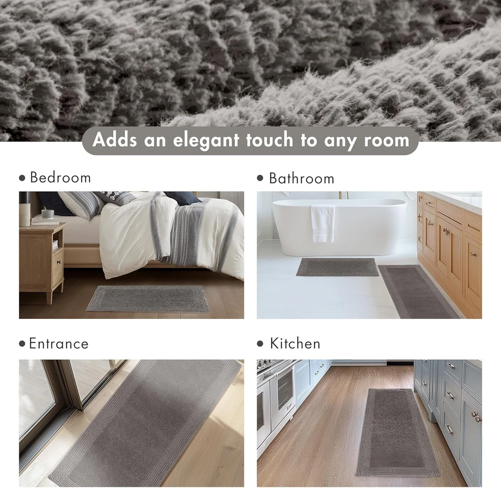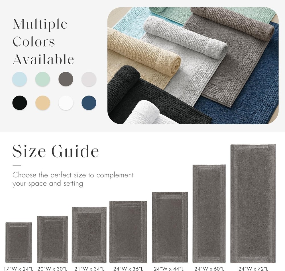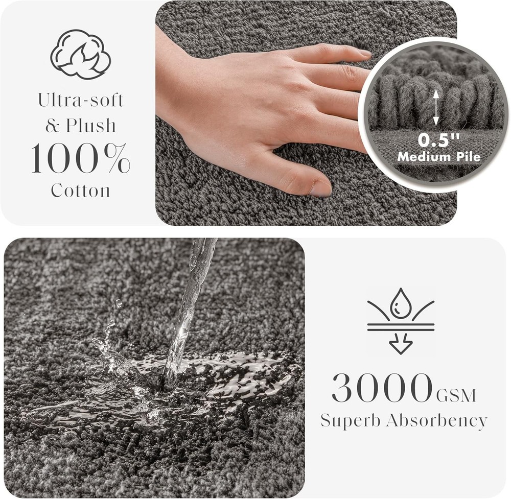 Madison Park Splendor Reversible 100% Cotton Tufted Bathroom Rug-3000 GSM Hotel Quality Luxurious Plush Medium Pile Bath Mat Absorbent, Quick Dry, Shower Room Décor, 21x34, Charcoal Product Details Brand: Madison Park Size: 1'9" x 2'10" (Rectangular) Material: Cotton Weave Type: Tufted Item Weight: 3.1 Pounds Pile Height: Medium Pile Construction Type: Machine Made Back Material Type: Cotton Color: Charcoal Indoor/Outdoor Usage: Indoor Is Stain Resistant: No Product Care Instructions: Machine wash cold seperately, on gentle/delicate cycle. Use mild detergent and non-chlorine bleach when needed. Tumble dry low, remove promptly. Some linting may occur due to nature of fabric. Do not iron. Do not dry clean. Pattern: Solid Shape: Rectangular Special Feature: Reversible Room Type: Bathroom Product Dimensions: 34"L x 21"W Rug Form Type: Bath Mat Style: Transitional Occasion: Housewarming Number of Pieces: 1 Item Thickness: 0.75 Inches Water Resistance Level: Not Water Resistant Is Autographed: No Model Name: Splendor Age Range (Description): Adult Item Weight: 3.05 pounds Item model number: MPS72-517 Brand: Madison Park Size: 1'9" x 2'10" (Rectangular) Material: Cotton Weave Type: Tufted Item Weight: 3.1 Pounds Heavy 3000GSM - This 100% cotton bath rug features a superior tufted top construction in a heavy 3000gsm weight, that creates an incredibly dense and plush look and feel Luxurious Comfort - The Madison Park Splendor 100% Cotton Tufted 3000 GSM Reversible Bath Rug brings incredible comfort and softness to your bathroom décor Reversible 2-in-1 - Bath rug is also fully reversible and machine washable for easy care. A non-slip mat is not included and highly recommended to keep the bath rug safe in place Size - 1 Bath Rug 21"W x 34"L, medium pile 0.5" height CARE - Ultra-plush with a heavier weight—frequent washing is unnecessary. Vacuum or shake the rug vigorously to remove dust and debris. When needed, wash separately on a low cycle. Avoid high temperatures to prevent shrinkage The Madison Park Splendor 100% Cotton Tufted 3000 GSM Reversible Bath Rug brings incredible comfort and softness to your bathroom decor. This 100% cotton bath rug features a superior tufted top construction in a heavy 3000gsm weight, that creates an incredibly dense and plush look and feel. This bath rug is also OEKO-TEX certified, meaning it does not contain any harmful substances to ensure quality comfort and wellness. The bath rug is also fully reversible and machine washable for easy care. A non-slip mat is not included and highly recommended to keep the bath rug safe in place. Complete this luxurious bathroom collection with our coordinating 1000 GSM Splendor Bath Towel set, available and sold separately.
