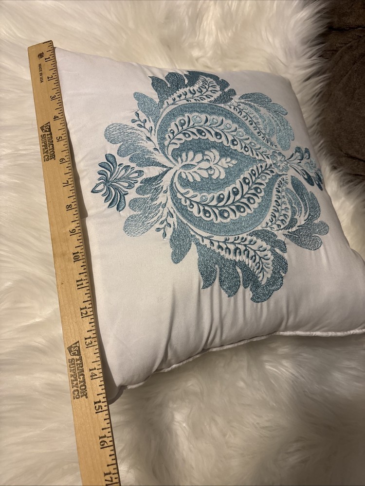 Add a touch of elegance to your living space with this beautiful Madison Park Square White Throw Pillow. The pillow features light blue embroidery with floral designs that will complement any cottage-themed decor. Measuring 15 x 15 inches, this pillow is made of 100% polyester and is perfect for use in the living room, bedroom, lounge, or guestroom. The pillow is easy to care for and can be spot cleaned only. It is embroidered and features a range of colors including white and blue. This decorative pillow is part of the Madison Park product line and is made in China. Get this throw pillow today and add a touch of sophistication to your home.