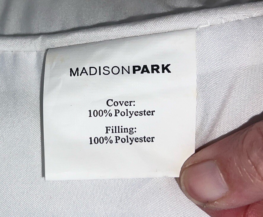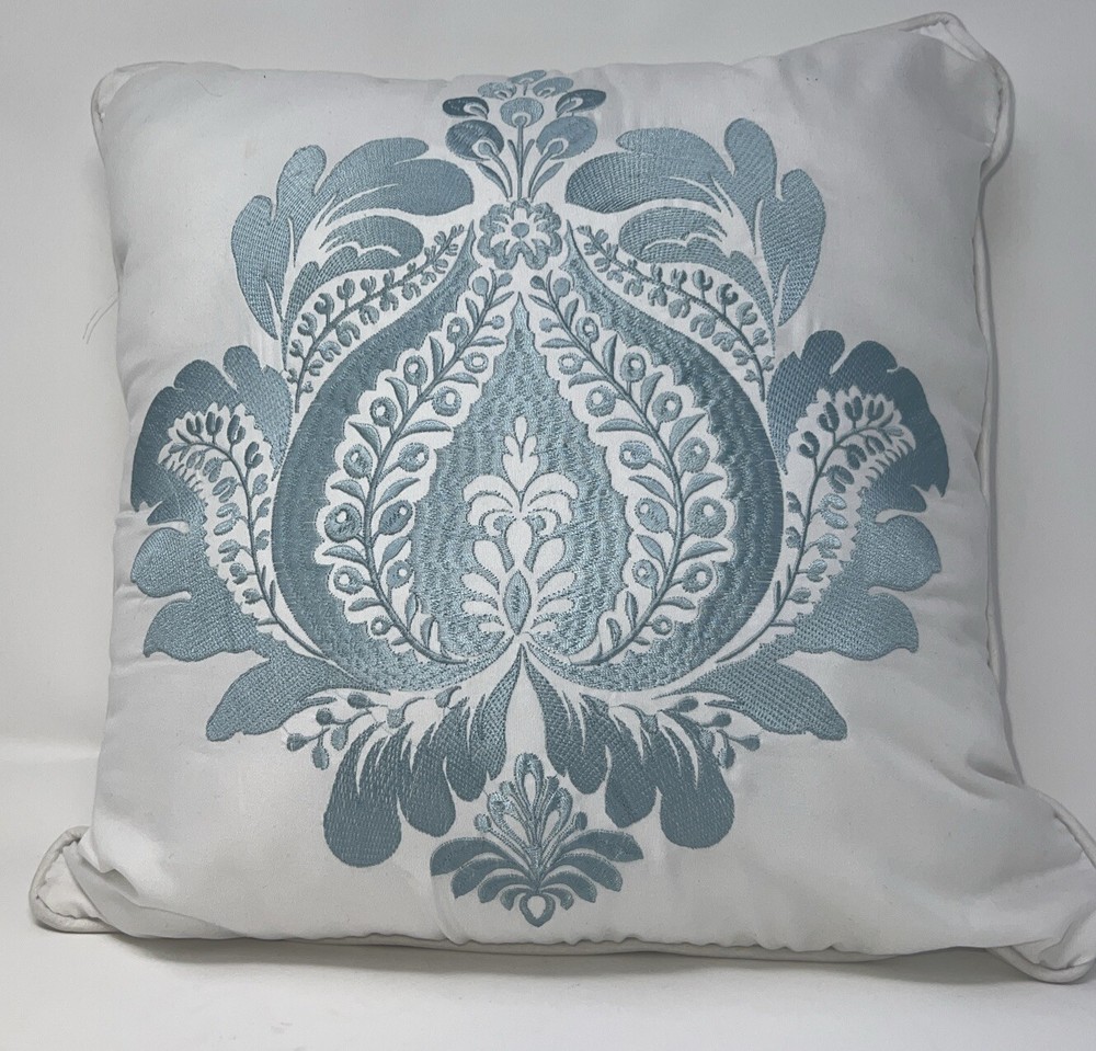Add a touch of elegance to your home decor with this Madison Park throw pillow. The 15 x 15 inch pillow features a beautiful white fabric with light blue embroidery of flowers. It is made of 100% polyester material, making it easy to clean and maintain. The pillow is perfect for adding to your collection of decorative pillows or for using as a decorative accent in your living room or bedroom. The care instructions include spot cleaning only, and it is made in China. Get this stylish and beautiful throw pillow today to add a touch of sophistication to your home! Smoke free home See photos for condition