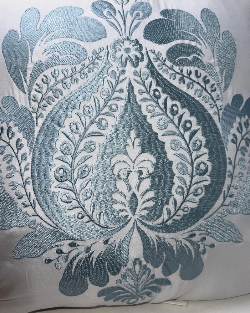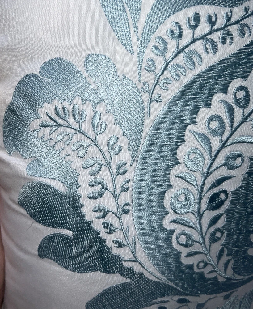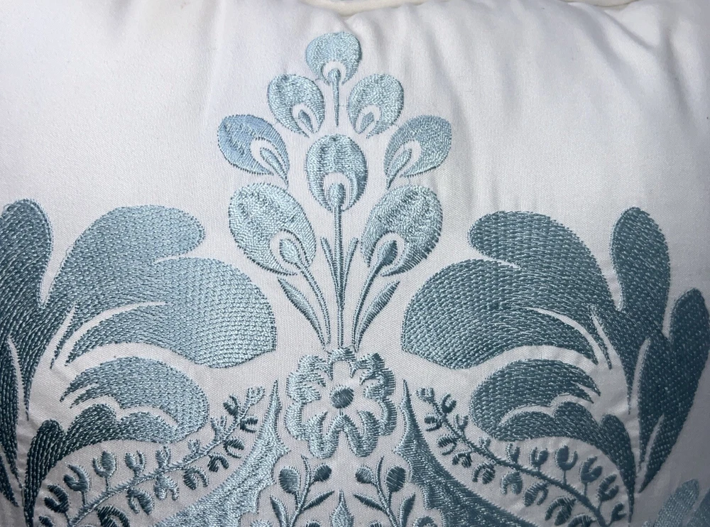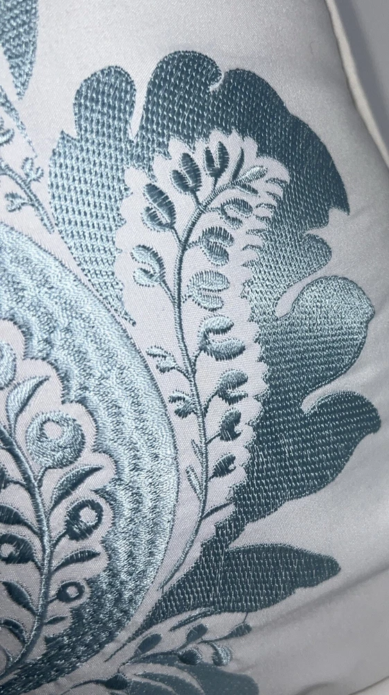 This pillow instantly elevates my living room! The delicate blue floral stitching on the crisp white fabric is so elegant. It's surprisingly soft and the perfect size for my sofa. Such a simple way to add a touch of class to any space.