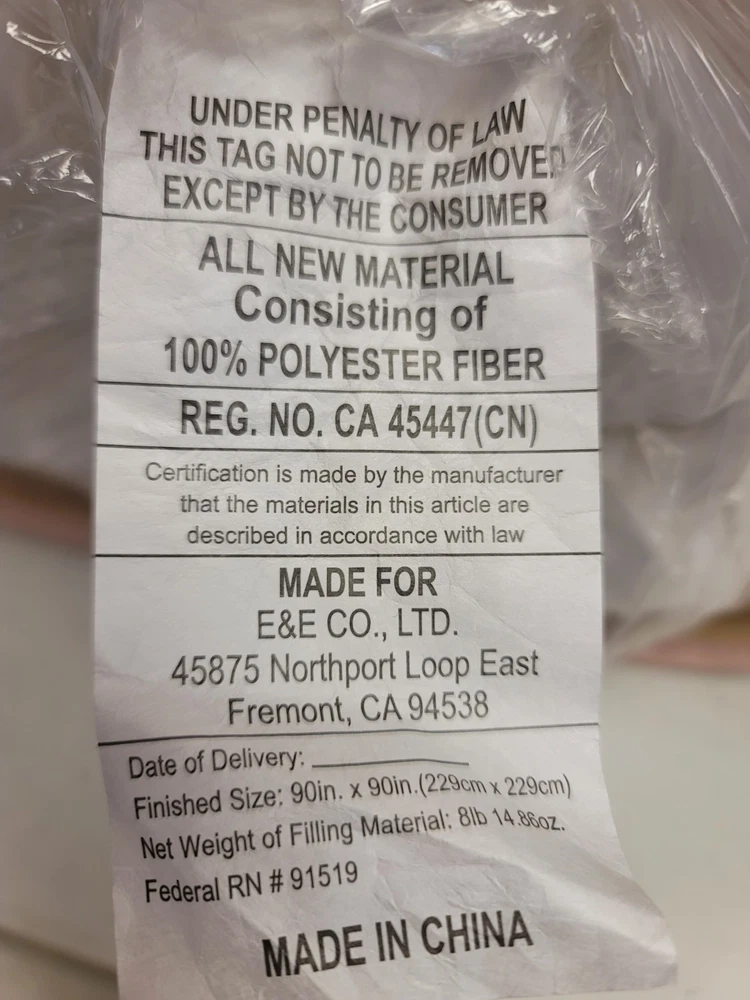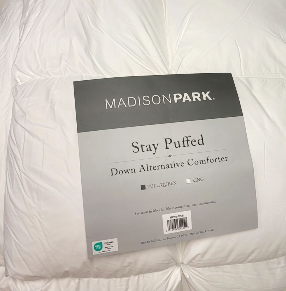 "Item is brand new and unused. Original packaging was damaged, so it has been repackaged. The item itself is in perfect condition. Experience a new dimension of comfort like never before with this luxuriously soft and fluffy down alternative comforter. Made from 100% polyester microfiber for ultimate coziness, with a 3D 3-dimension puff stitching design for an airy cloud-like look. 1 comforter dimensions - 90" L x 90" W Product weight - 12.89 lbs Set includes - 1 comforter 100% polyester high density microfiber shell with poly fiber filling 3-dimension (3D) puff stitching for an airy cloud-like look Overfilled for an extra-lofty look Jump tack quilted design ensures even distribution of the fill Heavy filling for keeping warm during cold winter months Corner loops secure insert to duvet covers Matching pillow protector is available and sold separately Dry clean or spot clean Polyester Shell and Filling Dry Clean Imported