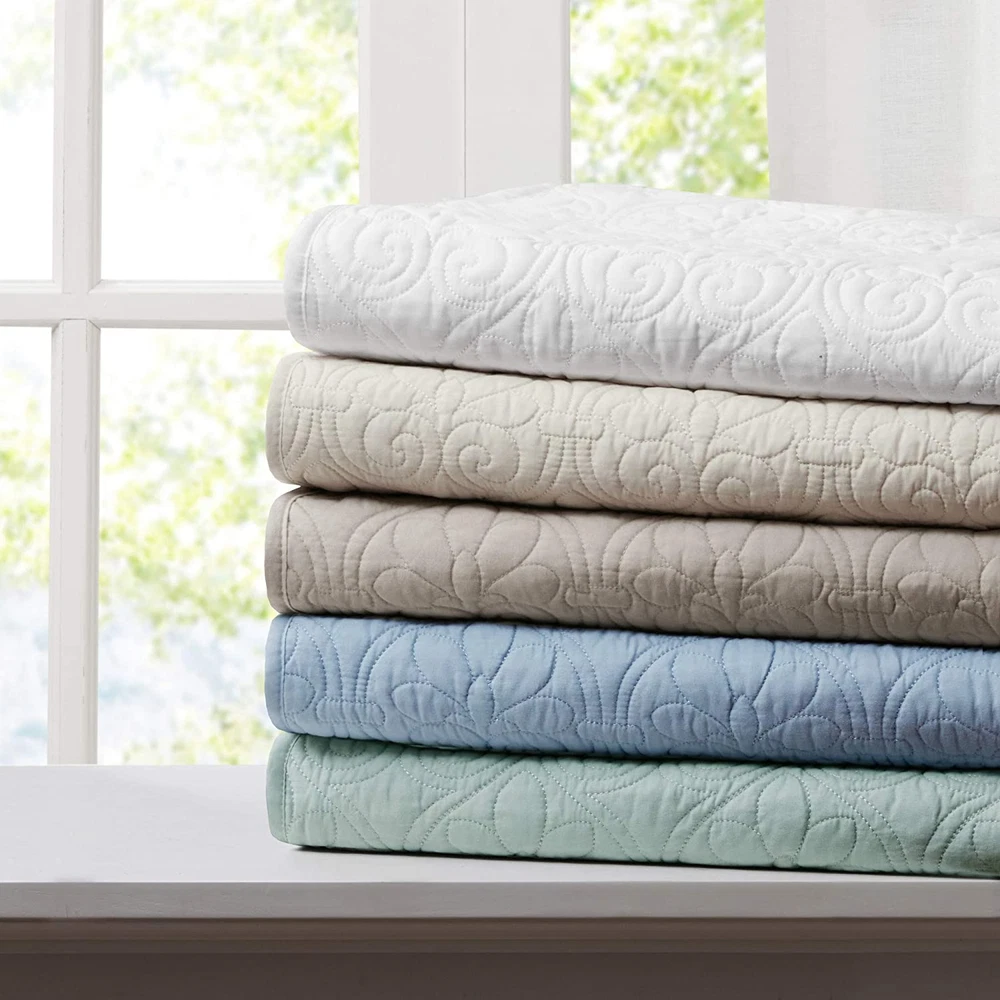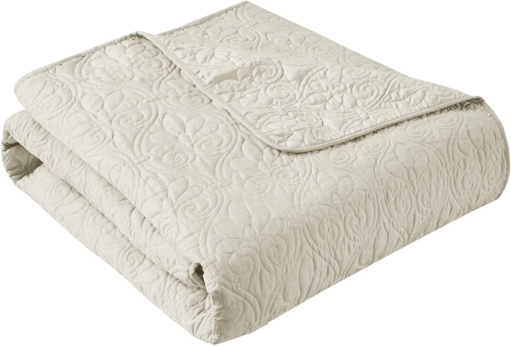 100% Microfiber Quilted Oversized Cotton fill Face and Reverse: 100% polyester micro fiber quilted Filling: cotton 200gsm Prewash finish 1 Throw:60x70" MACHINE WASH COLD, GENTLE CYCLE, AND SEPARATELY. DO NOT BLEACH. TUMBLE DRY LOW, REMOVE PROMPTLY, DO NOT IRON. IF THERE IS NO FREE MOVEMENT IN THE WASHER OR DRYER, USE LARGE CAPACITY COMMERCIAL WASHER/DRYER. Quebec's classic stitch pattern pairs easily with your existing d & eacute; cor and adds a new decorative element to any room. The oversized quilted throw has 100% cotton fill and is soft to the touch.