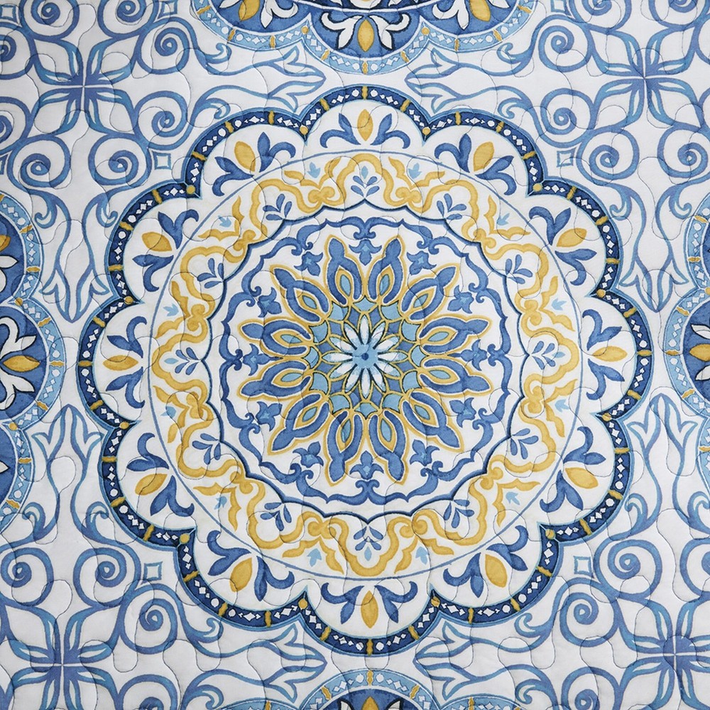 Store Categories Store Categories Bedding Comforters Decorative Pillows Duvet Covers Quilts & Coverlets Sheets Blankets & Throws Mattress Pads Pillows Home Decor Window Treatments Wall Art Home Accents Furniture Beds Dining Seating Ottomans & Benches Accent Chairs Accent Tables Dining Tables Sofas Bath Bath Robes Shower Curtains Towels Bath Rugs Bath Accessories Apparel Pajama Sets Nightgowns Rugs Rugs & Carpets Lighting Lamp Pendant Other Product Overview Details DESCRIPTION Create a vibrant and elegant space in your guest room with the Madison Park Tangiers 6 Piece Reversible Daybed Cover Set. This quilted daybed cover features a large medallion print with a striped reverse to create a chic globally-inspired look. The 3 reversible shams repeat the patterns seen on the daybed and feature tie closures on the sides, adding a delightful accent. An oblong decorative pillow with medallion embroidery and a striped bedskirt add the finishing touches to this reversible daybed set. Machine washable for easy care, this daybed cover set easily fits a Twin size mattress. FEATURES • Printed, Reversible look • Set includes: 1 Daybed Cover, 1 Bedskirt (15-inch drop), 3 Shams, and 1 Decorative Pillow • Daybed Cover fits a Twin size mattress • Machine washable MATERIAL Day Bed Cover/Sham: 100% polyester printed face and back, 240g/m2 90% cotton, 10% polyester Bed skirt: 100% polyester printed, 100% polyester platform Pillows: 100% polyester shell, polyester fill Available Sizes: Daybed Cover Set includes: 1 Daybed Cover: 39"W x 75"L + 17"D 3 Standard Shams: 20"W x 26"L 1 Bed skirt: 39"W x 75"L + 15"D 1 Decorative Pillow: 12"W x 18"L Bedding Comforters Decorative Pillows Duvet Covers Quilts & Coverlets Sheets Blankets & Throws Mattress Pads Pillows Home Decor Window Treatments Wall Art Home Accents Furniture Beds Dining Seating Ottomans & Benches Accent Chairs Accent Tables Dining Tables Sofas Bath Bath Robes Shower Curtains Towels Bath Rugs Bath Accessories Rugs Rugs & Carpets Lighting Lamp Pendant Product Overview Product Details DESCRIPTION Create a vibrant and elegant space in your guest room with the Madison Park Tangiers 6 Piece Reversible Daybed Cover Set. This quilted daybed cover features a large medallion print with a striped reverse to create a chic globally-inspired look. The 3 reversible shams repeat the patterns seen on the daybed and feature tie closures on the sides, adding a delightful accent. An oblong decorative pillow with medallion embroidery and a striped bedskirt add the finishing touches to this reversible daybed set. Machine washable for easy care, this daybed cover set easily fits a Twin size mattress. FEATURES • Printed, Reversible look • Set includes: 1 Daybed Cover, 1 Bedskirt (15-inch drop), 3 Shams, and 1 Decorative Pillow • Daybed Cover fits a Twin size mattress • Machine washable MATERIAL Day Bed Cover/Sham: 100% polyester printed face and back, 240g/m2 90% cotton, 10% polyester Bed skirt: 100% polyester printed, 100% polyester platform Pillows: 100% polyester shell, polyester fill Available Sizes: Daybed Cover Set includes: 1 Daybed Cover: 39"W x 75"L + 17"D 3 Standard Shams: 20"W x 26"L 1 Bed skirt: 39"W x 75"L + 15"D 1 Decorative Pillow: 12"W x 18"L