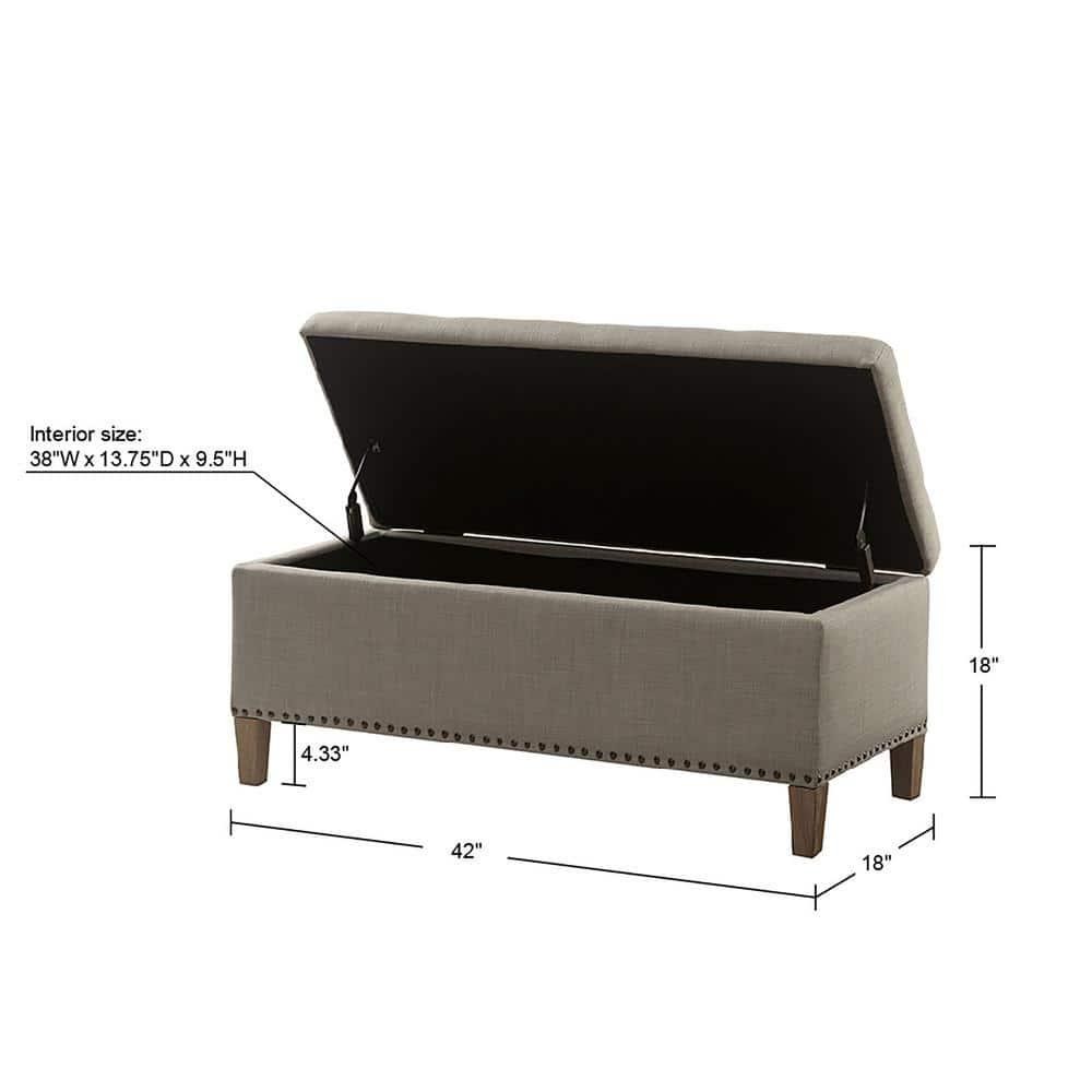 Contact Us Add to Favorite Fast Shipping Hassle Free Return eBay Money Back Guarantee Authenticity Guarantee Features Modern storage bench Tufted detailing on the top Individually placed nail heads Item Description Add the Madison Park Tessa Tufted Top Storage Bench to your home decor. This simple rectangle design will make this bench fit in any living space. It is upholstered in an elegant light taupe fabric with deep tufting details on the seat cushion. Lift the seat up to access the spacious storage space. Arms: Without Arms Assembly Required: Assembly Required Back: Without Back Back Type: Backless Color Family: Brown Color/Finish: Light Grey Commercial Use: Residential Cushion Material: Foam Features: No Additional Features Finish Family: Natural Frame Material: Wood Interior Furniture Type: Bench Pattern: Solid Product Weight (lb.): 25.93 lb Returnable: 30-Day Storage Type: Bench/Box Upholstery Color: Grey Upholstery Material: Polyester Weight Capacity (lb.): 400 lb Manufacturer Warranty: 1 Year Product Depth (in.): 18 in Product Height (in.): 18 in Product Width (in.): 42 in Seat Depth (in.): 18 in Seat Height (in.): 18 in Seat Width (in.): 42 in Width: Small (Under 45 in.) About us Customer service is our top priority! Please be sure to read the description thoroughly to make sure that this is the item you want before making a purchasing decision. If you have any questions about this item, please contact us via eBay messages before placing your order. We make every effort possible to accurately describe and depict the items. Please be aware that slight variations in color may be due to differences in lighting and computer monitor resolutions. All items are in stock at the time of listing; however, in the unlikely and unforeseen event that we are unable to fulfill your order through any of our networked warehouses, we will notify you as quickly as possible and offer you a 100% refund on your purchase. Thank you for shopping with us. We appreciate your business! Payment PayPal is our preferred method of payment. If you do not have a PayPal account, all major credit cards are gladly accepted through PayPal as the payment processor. PayPal offers great buyer and seller protection. Your order will be processed pending receipt of cleared payment through PayPal. Sales tax may be charged depending on your location. Shipping We provide fast, free shipping. Most items are shipped within 3-5 business days of receiving cleared payment. We ship to the lower 48 contiguous United States only. We do not ship to P.O. Boxes or APOs. For select items, we ship internationally through eBay?s Global Shipping Program. We do ship most of our smaller items internationally using eBays Global Shipping Program. If ordering electrical items outside of the U.S., please note that they will come equipped with a standard U.S. voltage plugs. You will need a suitable adapter to use the item in your country. Certain restrictions apply. Standard or Economy Shipping is ALWAYS FREE! You will be notified via eBay messages as soon as your items ship. Special Notice for Freight Items: If an item ships via Freight (Truck) Delivery, a valid phone number will be required so that we can contact you to schedule delivery. The item may be delivered with curbside delivery. An adult signature will be required. Please be sure to have available help on hand to assist you with moving the item to the desired location in or outside of your home. Freight items must be inspected upon delivery. In the unlikely event that damaged is observed, you MUST refuse delivery and note the damage on the shipping receipt and send it back via the Freight carrier. Returns will not be accepted on Freight items after they have been delivered, inspected, and the driver has left the premises. Returns We offer a 30 day return/exchange policy for most of our products. You can request a refund if you are dissatisfied for any reason with your product. (Restocking Fee May Apply). Only factory defects are accepted as a reason for a return. In the case of factory defects, if available, we will replace the product for you. When returning an item, it must be in all of the original packaging and include all of the original accessories or items that came with it. The item and package should be in original and perfect condition. You will be required to cover shipping on the return of non-defective items. All returns MUST be done within 30 days of date of purchase. Please note that we cannot give refunds or replacements after the 30 day limit has expired. When sending in a return, please note that it can take up to 7 business days for the return to be processed. We do our best to process as quickly as possible. We are extremely fair, and in the rare event of something out of the ordinary happening with our products or shipping, we will gladly work with you to find a fair resolution. Disclaimer Were sorry, but we do not honor product exchange requests. If you need to exchange an item received, you will need to go through the normal returns process identified in our returns section and then order the correct item, if it is still available. Orders are processed immediately and dispatched to fulfillment as soon as they are received. For this reason, we are typically unable to honor cancellation requests. If you need to cancel the transaction, please contact us as soon as possible and we will attempt to cancel the order. If the order has gone too far through the fulfillment process, we will be unable to cancel. In that event, you would need to wait until you receive the item and go through the normal returns process as mentioned in the returns section of our policies. Payment Options Shop With Confidence Copyright ©2023, All rights reserved. Listed by Sku Fetch