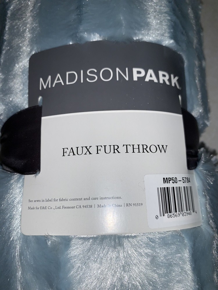 Madison Park Faux Fut Blanket Blue New with tags Smoke Free home...