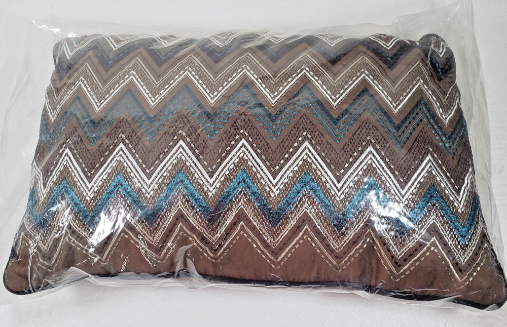 Madison Park Throw Pillow Brown Blue Embroidered Decorative 12x 18in NIP New in original package Pictures are of the actual item you will be receiving and have not been manipulated except to remove the background. Please see all measurements in description and pics to avoid returns. Fast same business day shipping. Recycled packing and shipping materials used whenever possible.