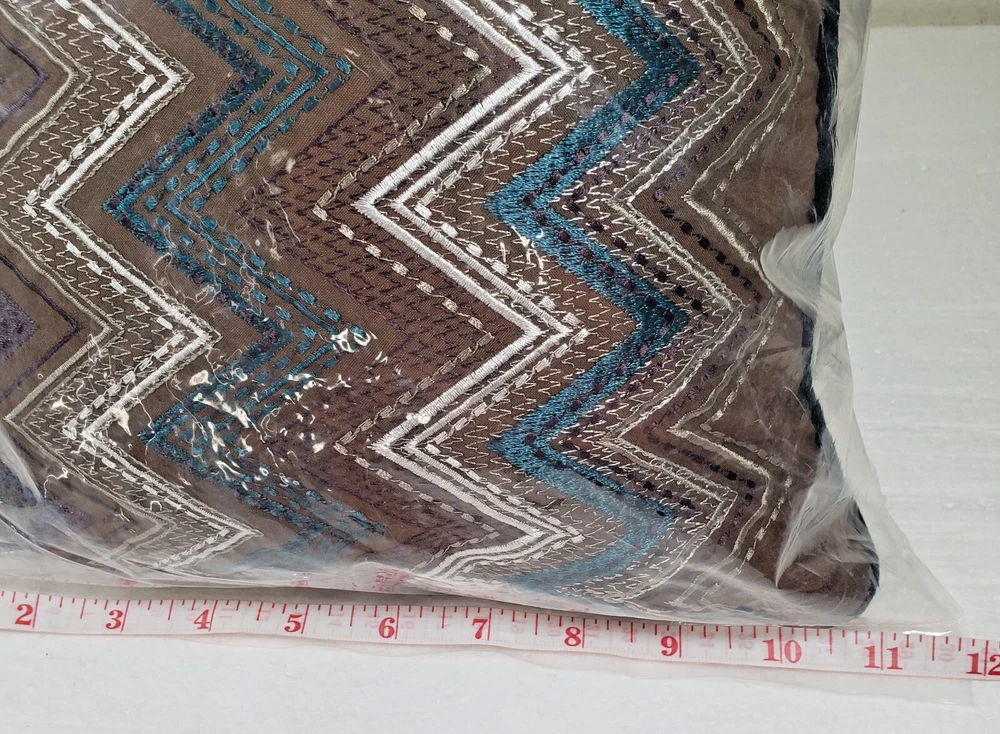 This pillow is absolutely stunning! The embroidered design in brown and blue adds such an elegant touch to my couch. The quality is fantastic—soft yet durable. It arrived quickly, still in its original packaging, just as pictured. Love that they use recycled materials for shipping too. Perfect size for accenting any room! Highly recommend.