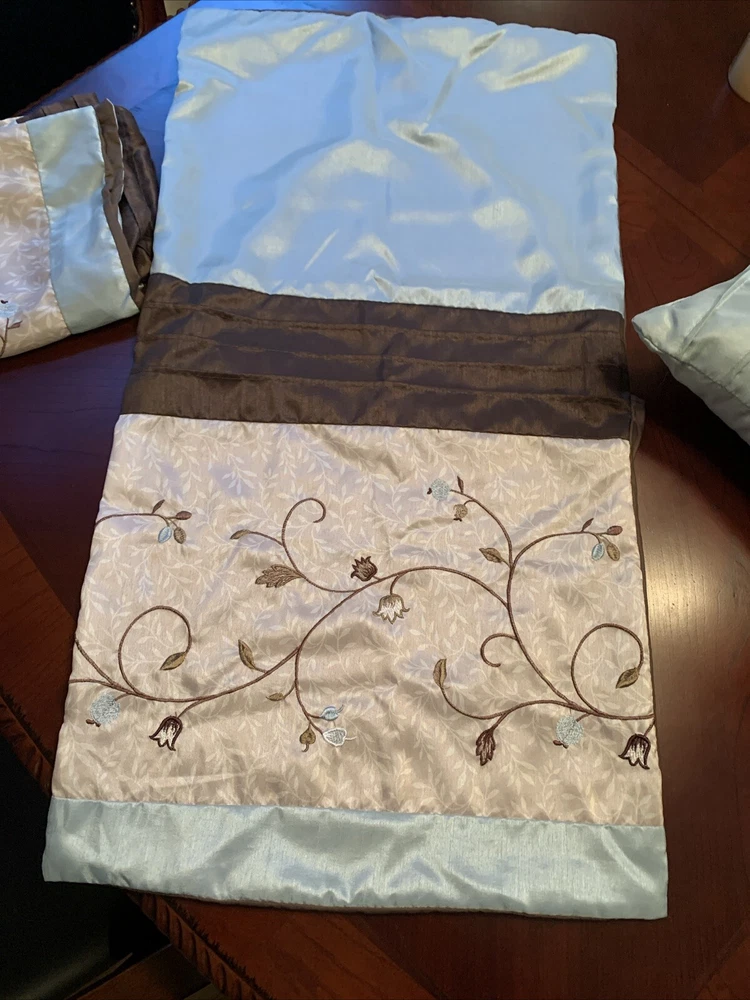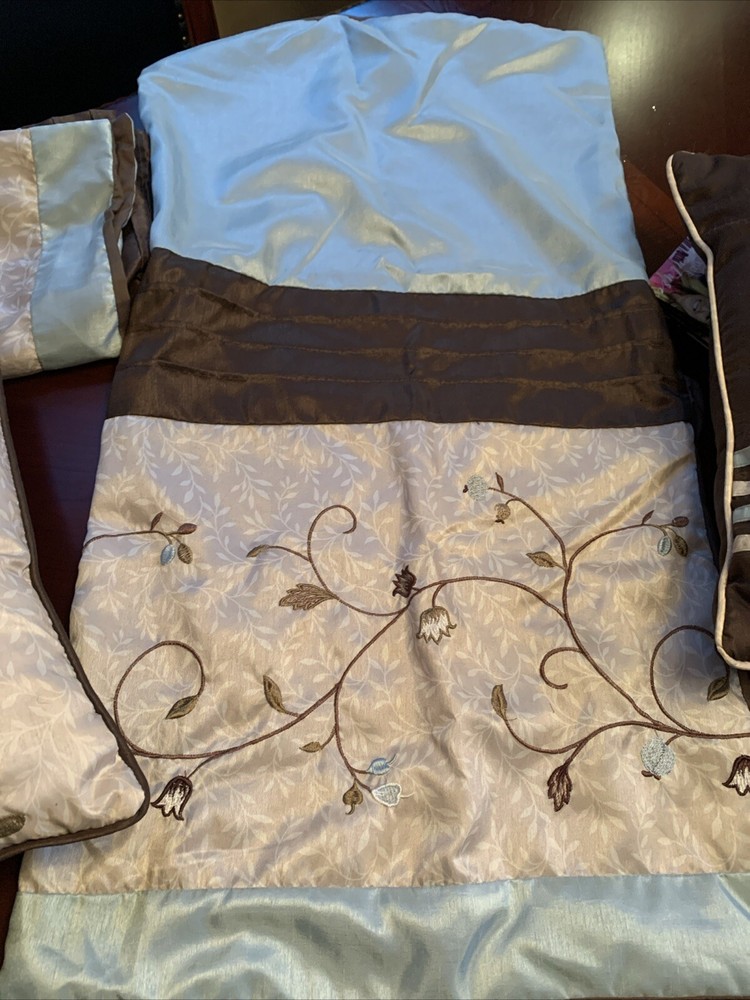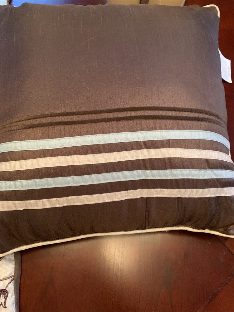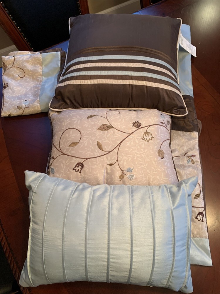 Madison Park Throw Pillows set includes 3 pillows and 2 king shams in aqua blue, green, and brown tones. The pillows are adorned with a floral pattern and embroidered details, adding a contemporary touch to any bedroom. Care instructions recommend spot cleaning only. This set is versatile for women, men, boys, and girls and is ideal for adding a pop of color and style to your living space. Pillows 2 13x16 and 16x16