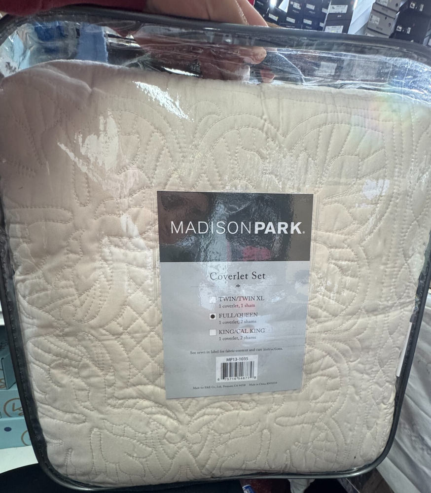 Madison Park Tuscany 3-Pc. Quilt Set Full/Queen New Includes 1 Coverlet, and 2 Shams Brand: Madison Park Size: Full/Queen Color: Cream New...