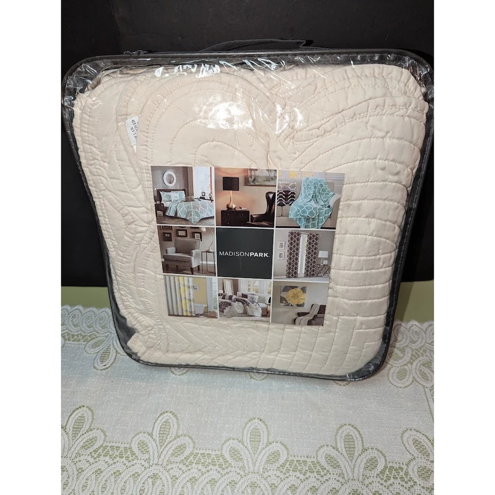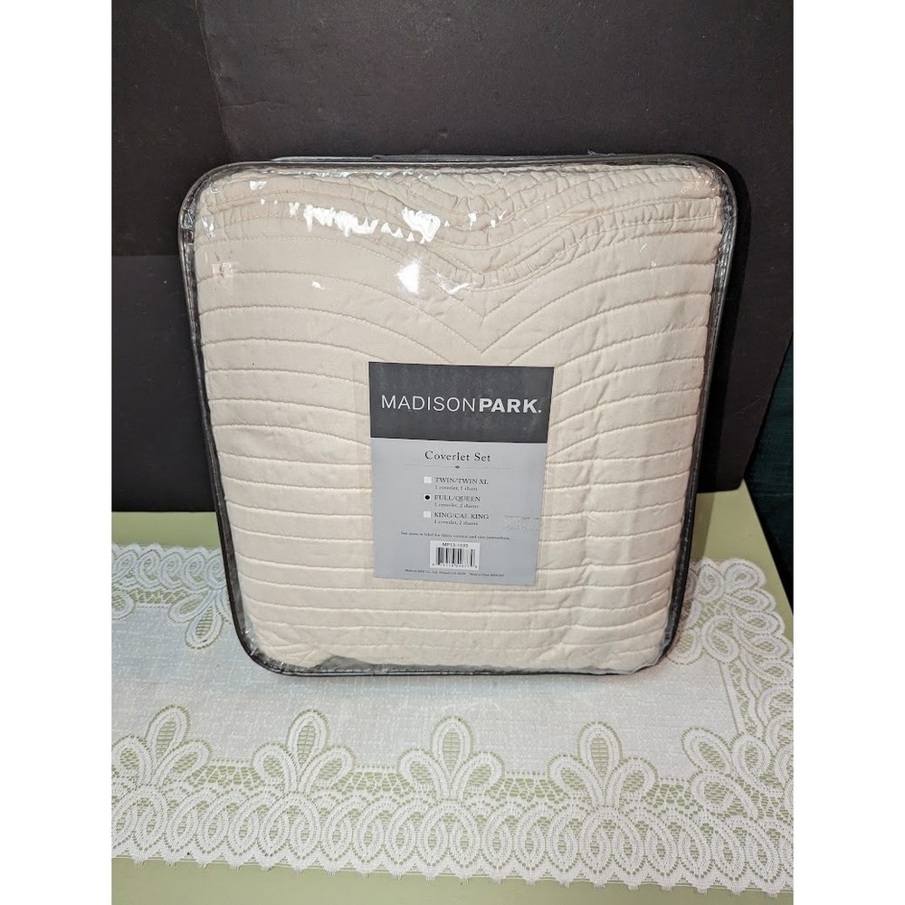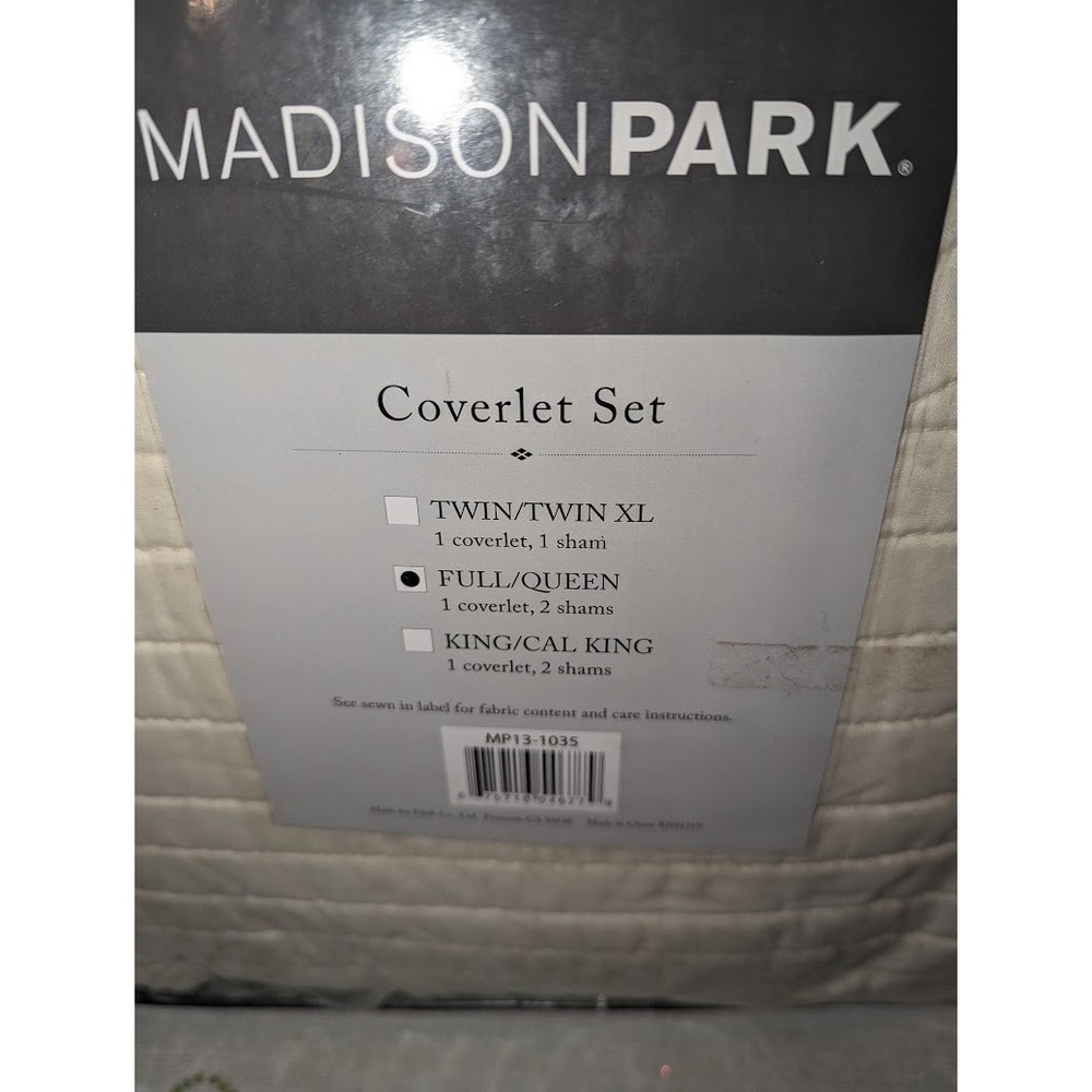 <![CDATA[<div>Madison Park Tuscany Full/Queen 3 Piece Coverlet Set in Ivory - Olliix MP13-1035 Description: Madison Park Tuscany Full/Queen 3 Piece Coverlet Set in Ivory - Olliix MP13-1035 Madison Park Tuscany is the perfect coverlet to use as a layering piece or an alternative to your comforter for a new solid look. The decorative stitch pattern pairs easily with your existing decor and will sure to add a new decorative element to your bedroom with the beautiful scalloped edges. This coverlet is filled with cotton filling and features a polyester microfiber fabrication on the face and the reverse. Its prewash finish gives a worn in appearance to this decorative bedding. MP13-1035 Features: Classic Life Style Coverlet: 100% Polyester Micro Fiber Quilted, Prewash Finish Filling: 90% Cotton, 10% Other Fibers 2 Standard Shams:20x26" (2) 1 Coverlet:94x96" Approximate Weight: 8.15 lbs.