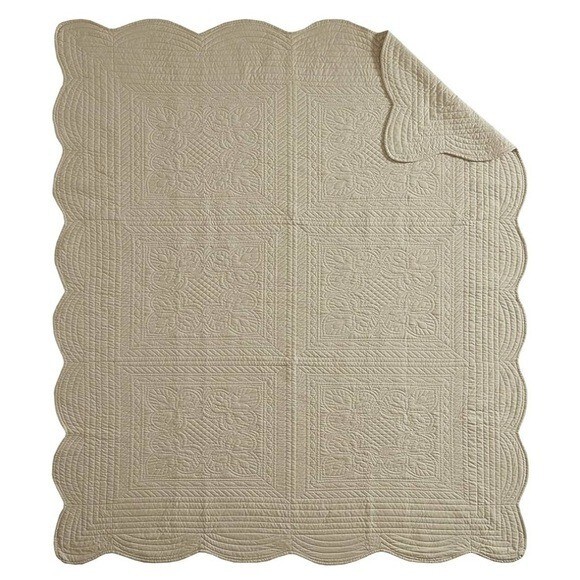 Add some classic style and comfort to your space with the cozy quilting and scalloped-edge design of this luxe pre- washed Tuscany oversized throw from Madison Park. Dimensions: 60" x 72" All polyester Machine washable • Imported