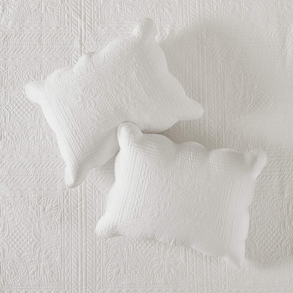 Cottage Quilt Set: Elevate your décor with a charming coastal elegance quilt, featuring embossed damask quilting & a scalloped edge. Oversized coverage for added comfort & complete with matching shams, it's perfect for a charming update Cotton Filling Quilt: Embrace the softness of pre-washed brushed microfiber and cotton-filling in this lofty and breathable, all-season quilt set, perfect for cozy nighttime summer snuggles or as an extra layer of warmth and comfort in the winter season Quality Feel: This quilt set features high-quality stitching and material, and elegant damask quilting designed to prevent clumping while enhancing durability. Hygienically treated for lasting freshness and cozy comfort Set includes: 1 Coverlet: 108"W x 96"L, 2 King Shams: 20"W x 36"L DURABLE & EASY CARE: Our microfiber quilt set offers durability to withstand daily wear and tear. Simply machine wash cold. Gently and separately. Do not bleach, Tumble dry low. Iron on medium temperature if needed