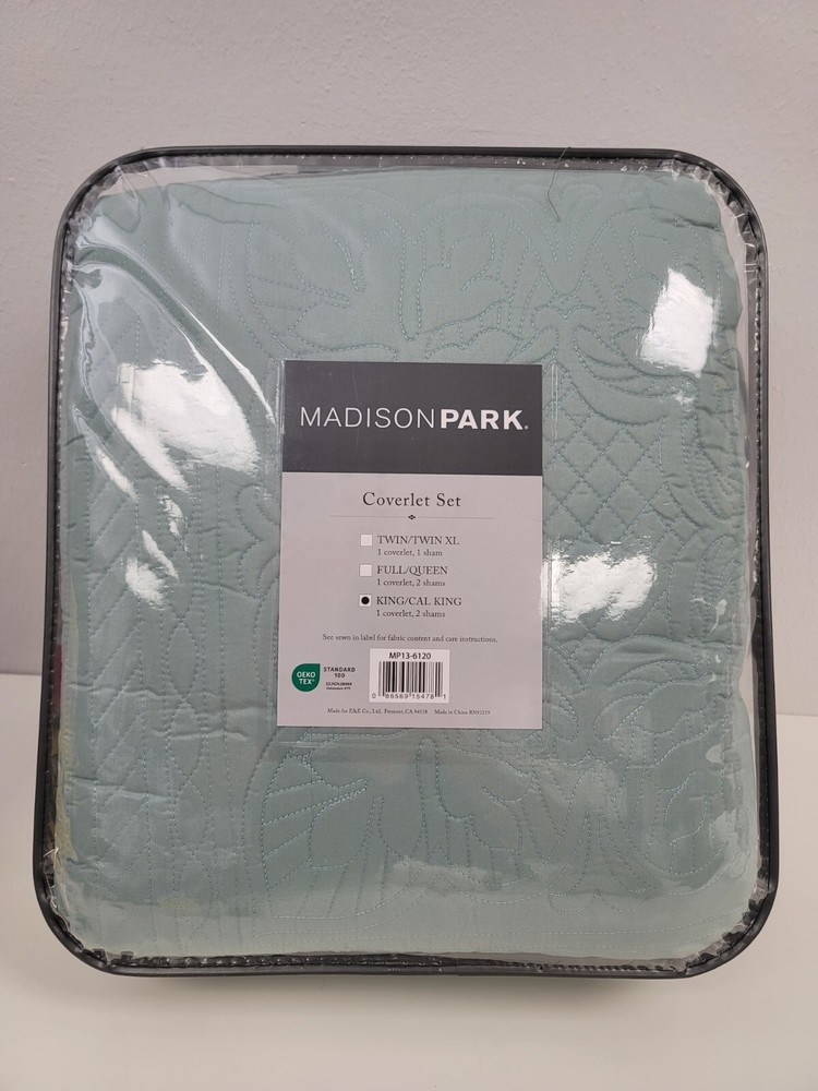 Madison Park Tuscany is the perfect coverlet to use as a layering piece or an alternative to your comforter for a new solid look. The decorative stitch pattern pairs easily with your existing décor and will sure to add a new decorative element to your bedroom with the beautiful scalloped edges. This coverlet is filled with cotton filling and features a polyester microfiber fabrication on the face and the reverse. Its prewash finish gives a worn in appearance to this decorative bedding. Product Features coverlet, 2 king shams coverlet:108" x 96",king sham (2):20" x 36" Colors: Solid Polyester/cotton Machine Washable, Spot Clean Pillows Imported