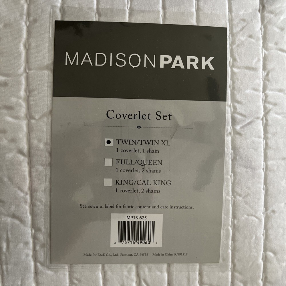 This is a Madison Park Stitched Coverlet/Bedspread and Sham. The set is white. Brand-new. Ships USPS....