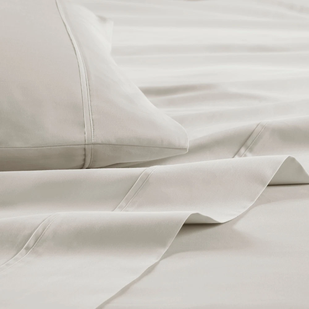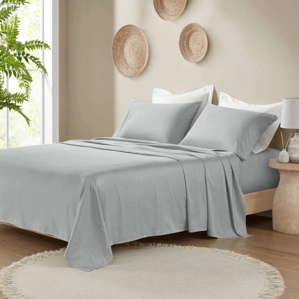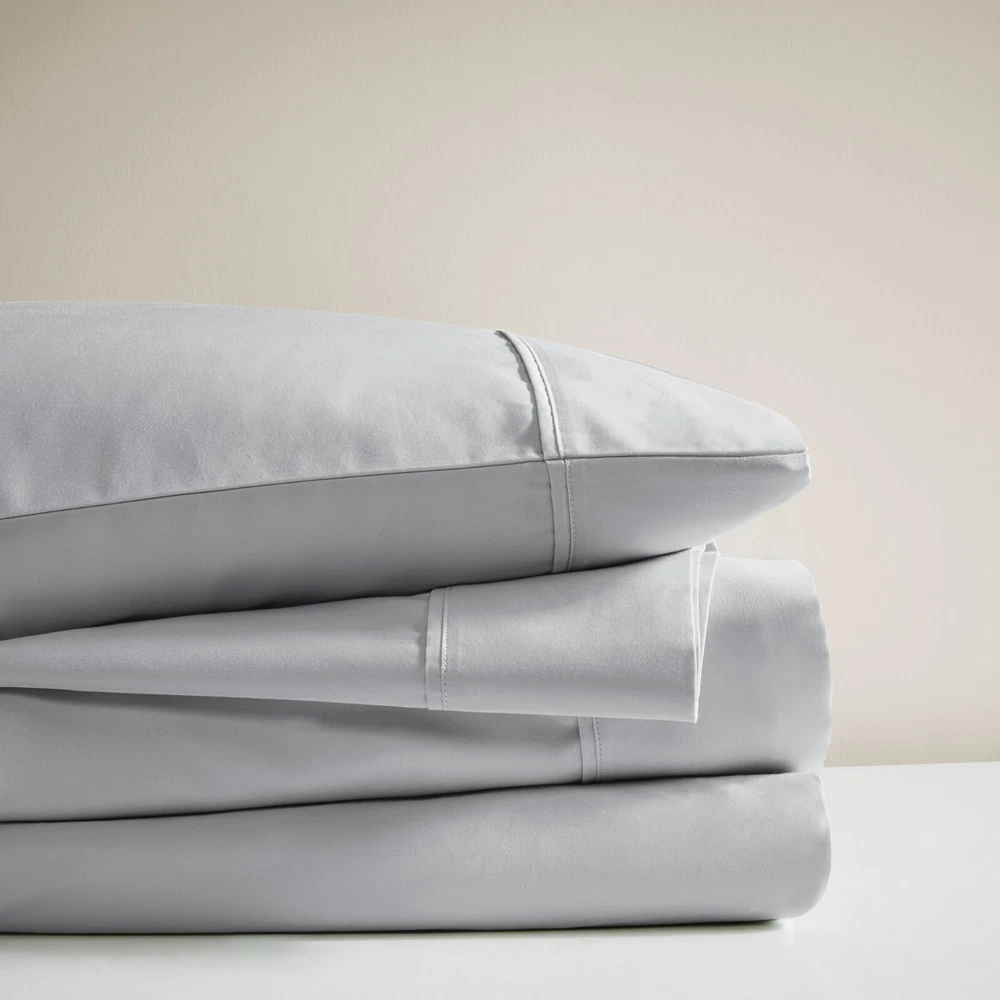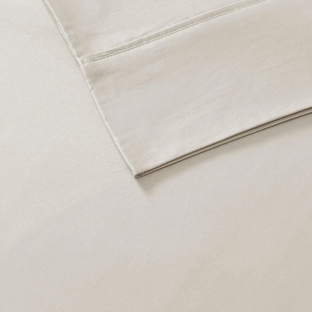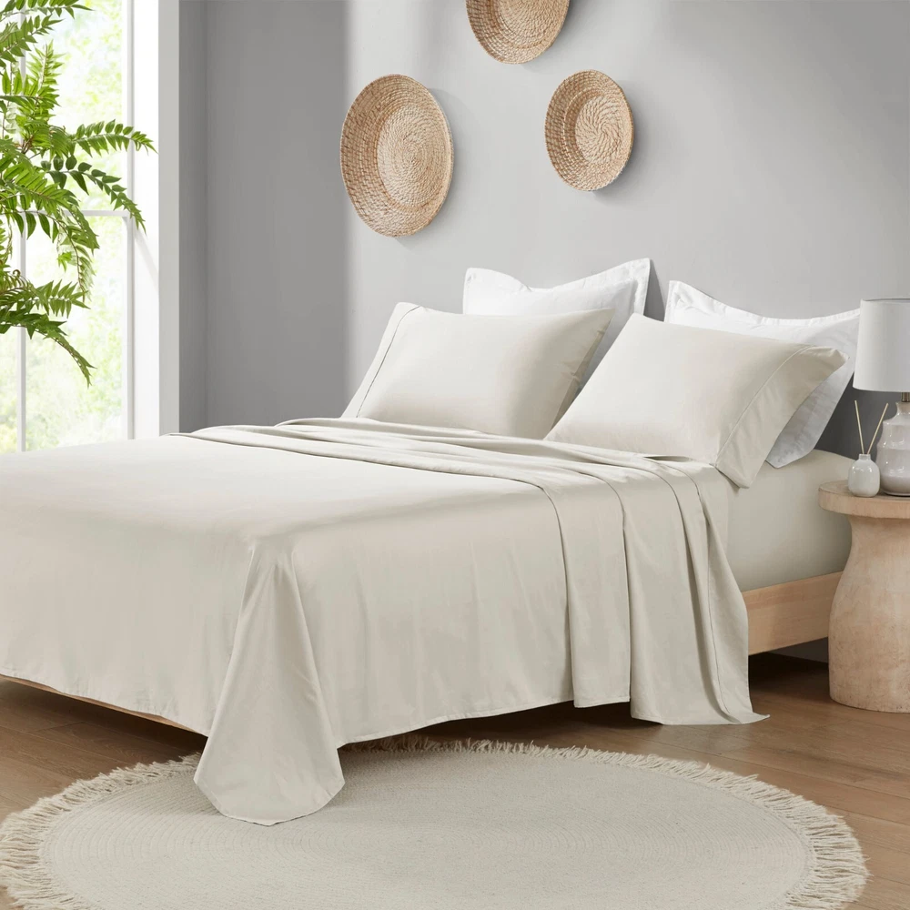 Madison Park Ultra-Soft 100% Organic Cotton Deep Pocket Sheet Set Queen King DESCRIPTION Looking for the perfect ultra soft cotton sheets? You'll love our 300 Thread Count Organic Cotton sheet set! Made of 100% organic cotton, this set has a buttery smooth hand feel with a sateen weave that will make you feel pampered every time you crawl into bed. The breathable fabric helps keep you comfortable so you can rest easy all night long. Plus, our deep pocket fitted sheet will fit mattresses up to 18", making it perfect for any size bed. The Z-style hem stitching adds a decorative touch, while also adding durability to the seams. Machine washable for easy care, this cotton sheet set is also OEKO-TEX certified, meaning it does not contain any harmful substances or chemicals to ensure quality comfort and wellness. FEATURES • 300 Thread Count Sateen Weave, GOTS certified 100% organic cotton • Ultra-soft hand feel, natuarally breathable fabric • Set includes flat sheet, fitted sheet and 2 pillowcases • Deep pocket fitted sheet will fit up to 18" mattresses, comes fully elasticized for better coverage and fit • Pillowcases are open ended on one side • Features a Z hem decorative stitch • In our efforts to reduce plastic, this product comes in a reusable, organic cotton bag • Machine washable for easy care • OEKO-TEX Certified, includes no harmful substances or chemicals MATERIAL 100% Organic Cotton Available Sizes: Queen Sheet Set includes: 1 Flat Sheet: 90"W x 102"L 2 Standard Pillowcases: 20"W x 32"L 1 Fitted Sheet: 60"W x 80"L + 16"D King Sheet Set includes: 1 Flat Sheet: 108"W x 102"L 2 King Pillowcases: 20"W x 40"L 1 Fitted Sheet: 78"W x 80"L + 16"D
