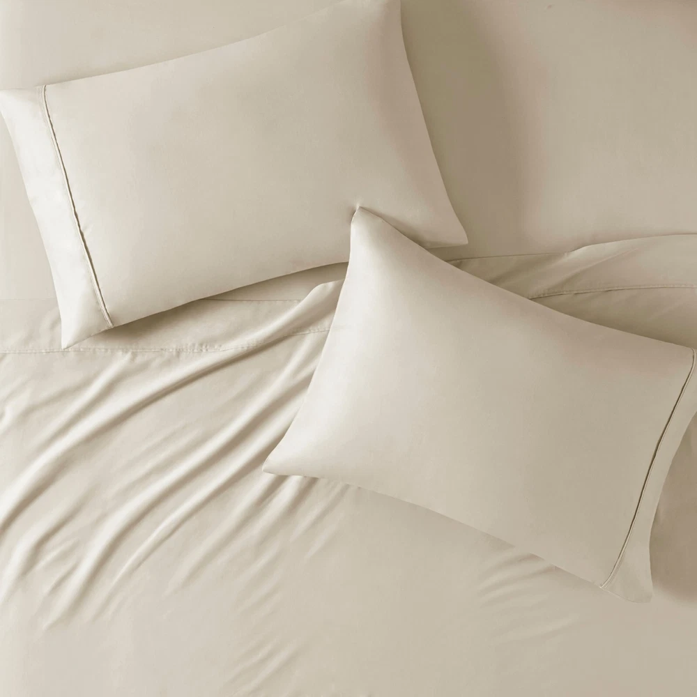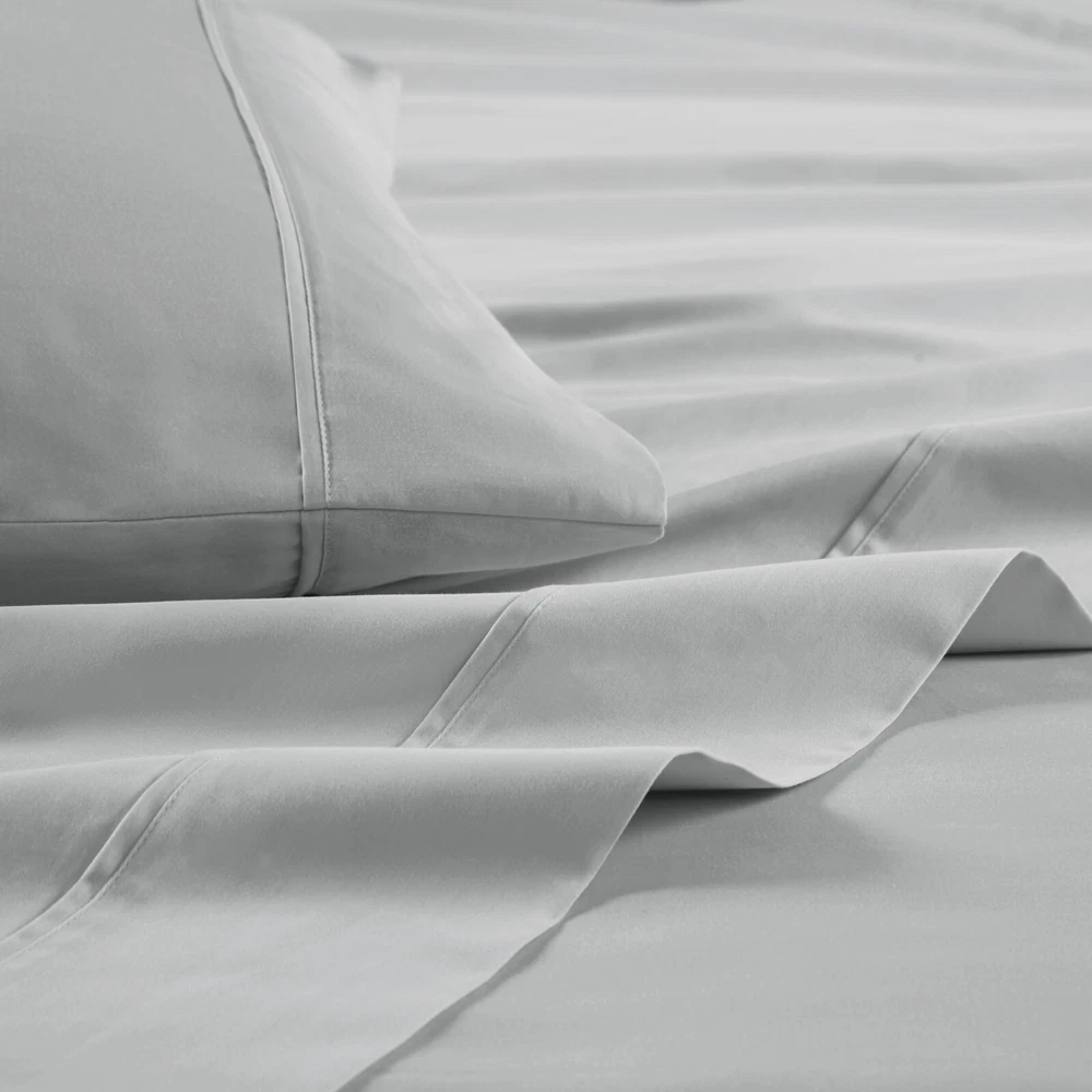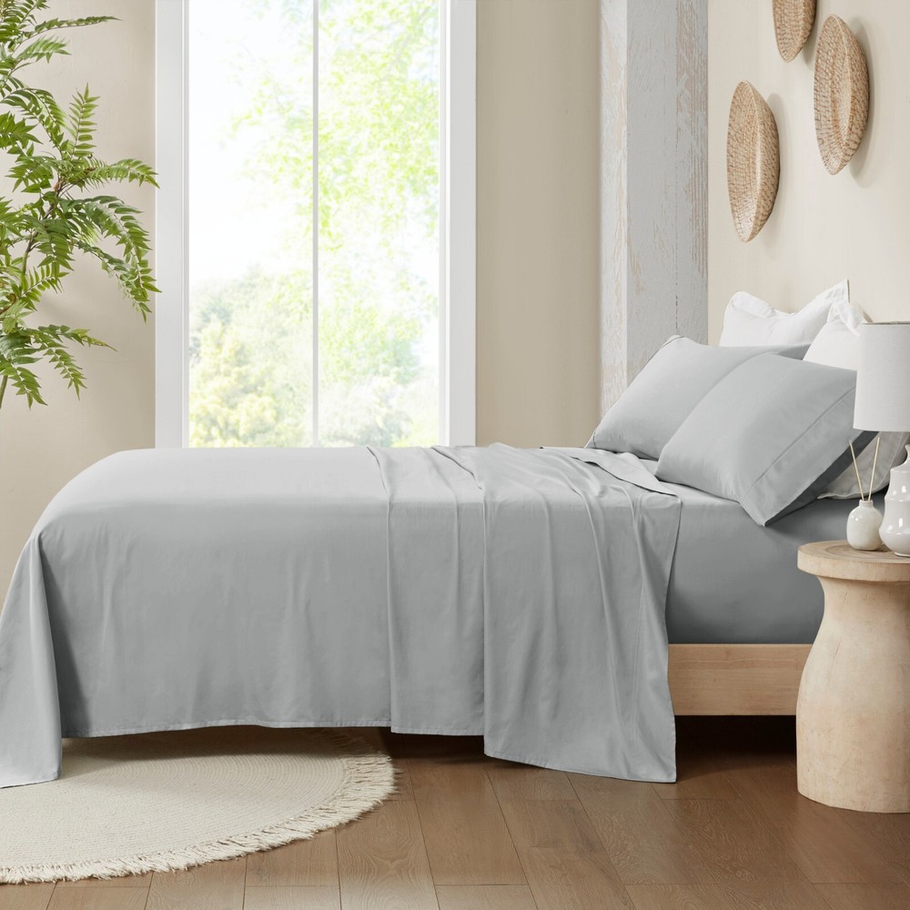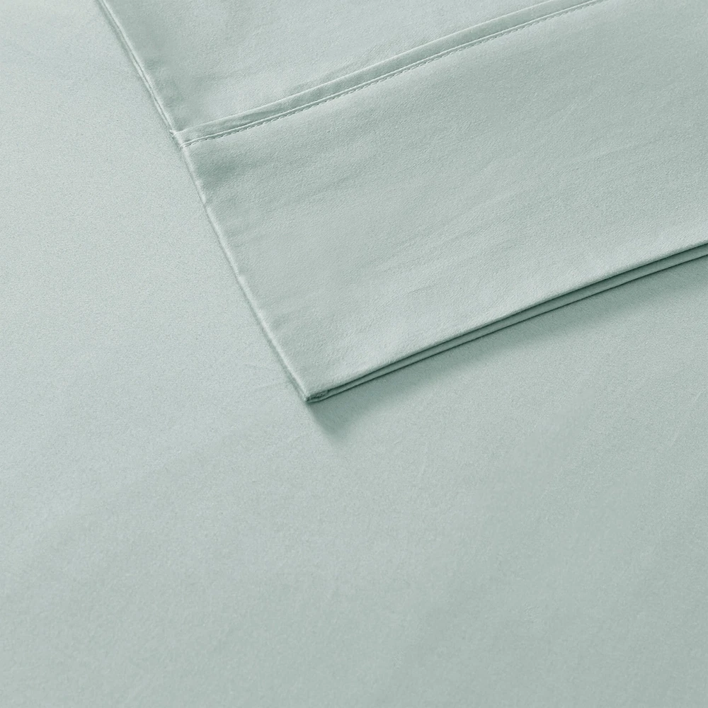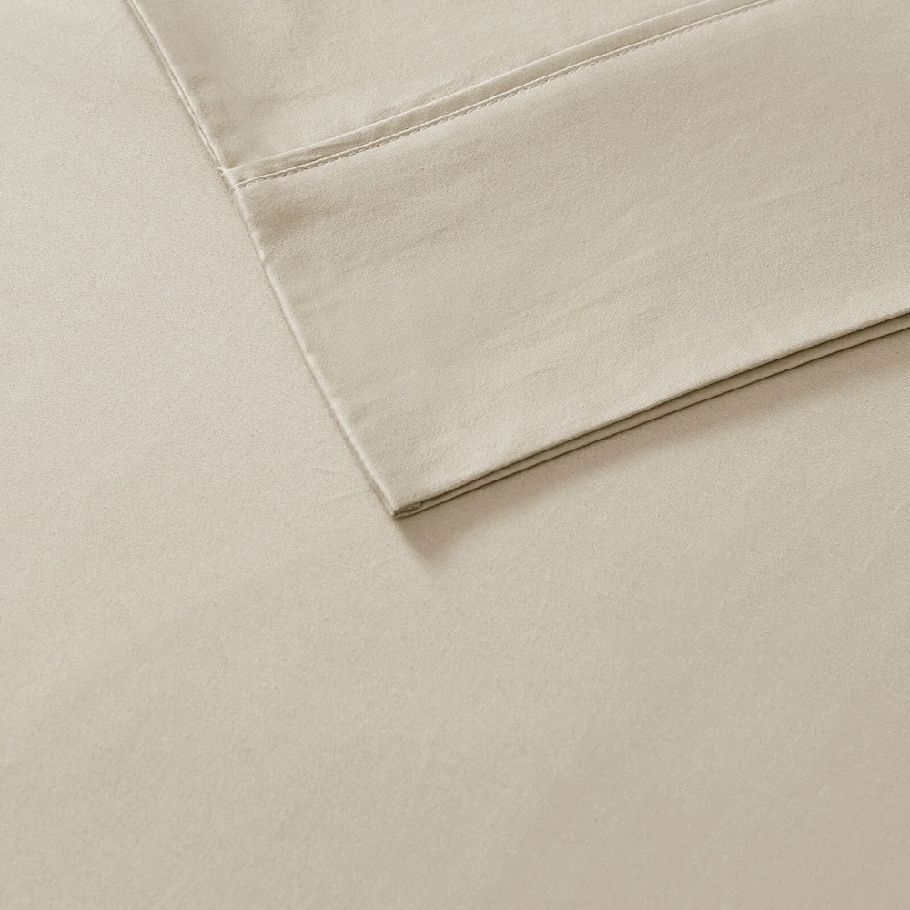 Madison Park Ultra-Soft 100% Organic Cotton Deep Pocket Sheet Set Queen King DESCRIPTION Looking for the perfect ultra soft cotton sheets? You'll love our 300 Thread Count Organic Cotton sheet set! Made of 100% organic cotton, this set has a buttery smooth hand feel with a sateen weave that will make you feel pampered every time you crawl into bed. The breathable fabric helps keep you comfortable so you can rest easy all night long. Plus, our deep pocket fitted sheet will fit mattresses up to 18", making it perfect for any size bed. The Z-style hem stitching adds a decorative touch, while also adding durability to the seams. Machine washable for easy care, this cotton sheet set is also OEKO-TEX certified, meaning it does not contain any harmful substances or chemicals to ensure quality comfort and wellness. FEATURES • 300 Thread Count Sateen Weave, GOTS certified 100% organic cotton • Ultra-soft hand feel, natuarally breathable fabric • Set includes flat sheet, fitted sheet and 2 pillowcases • Deep pocket fitted sheet will fit up to 18" mattresses, comes fully elasticized for better coverage and fit • Pillowcases are open ended on one side • Features a Z hem decorative stitch • In our efforts to reduce plastic, this product comes in a reusable, organic cotton bag • Machine washable for easy care • OEKO-TEX Certified, includes no harmful substances or chemicals MATERIAL 100% Organic Cotton Available Sizes: Queen Sheet Set includes: 1 Flat Sheet: 90"W x 102"L 2 Standard Pillowcases: 20"W x 32"L 1 Fitted Sheet: 60"W x 80"L + 16"D King Sheet Set includes: 1 Flat Sheet: 108"W x 102"L 2 King Pillowcases: 20"W x 40"L 1 Fitted Sheet: 78"W x 80"L + 16"D