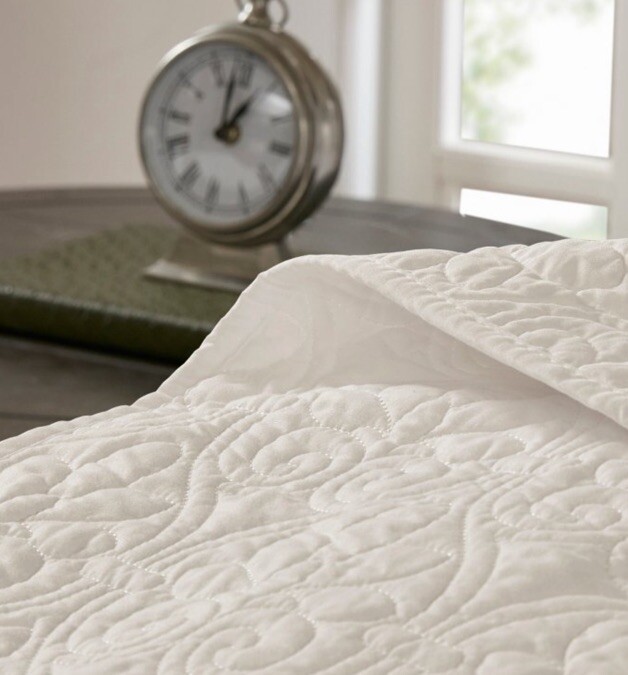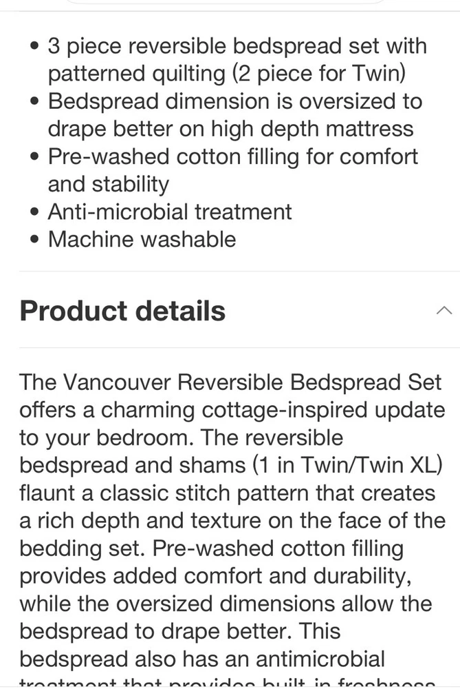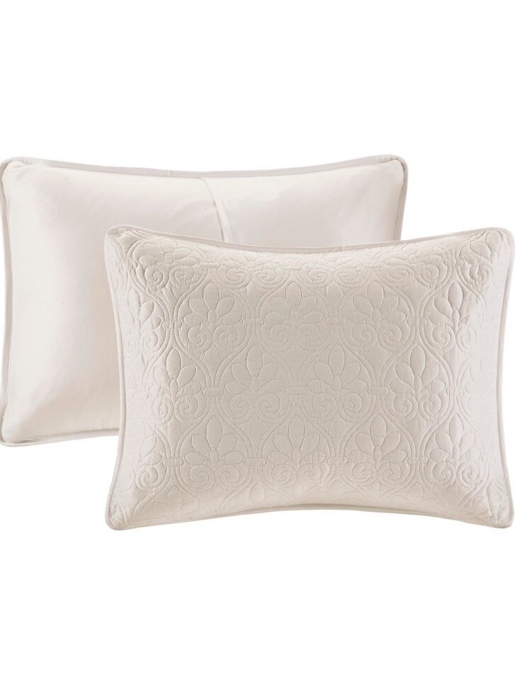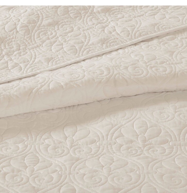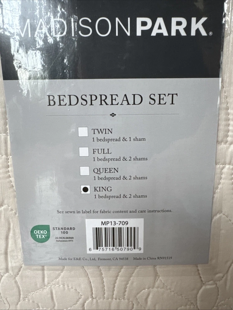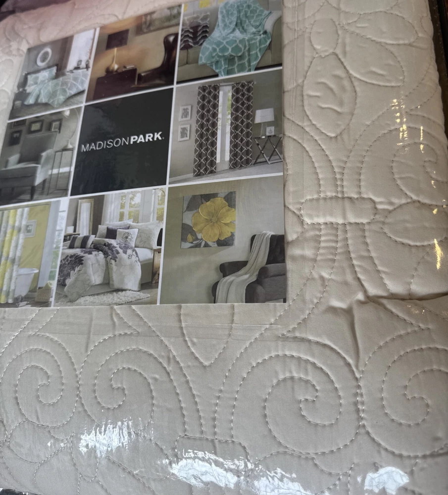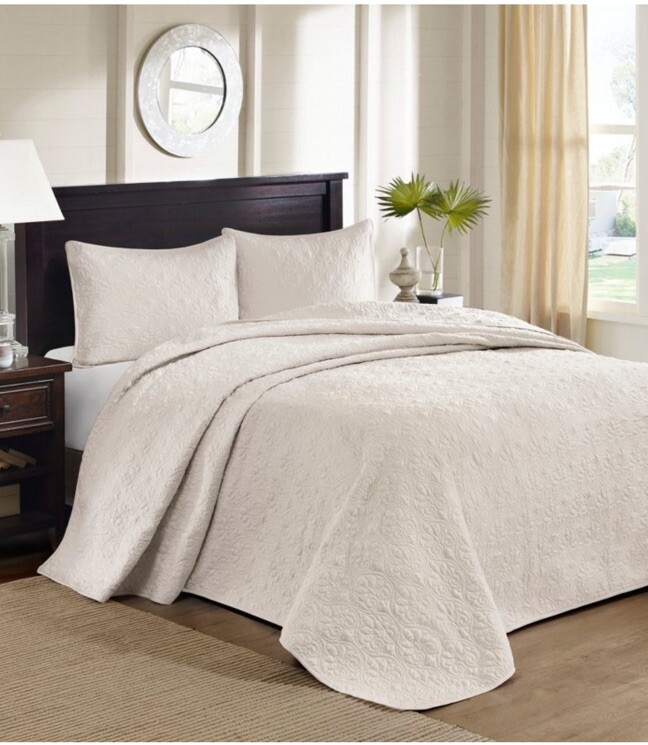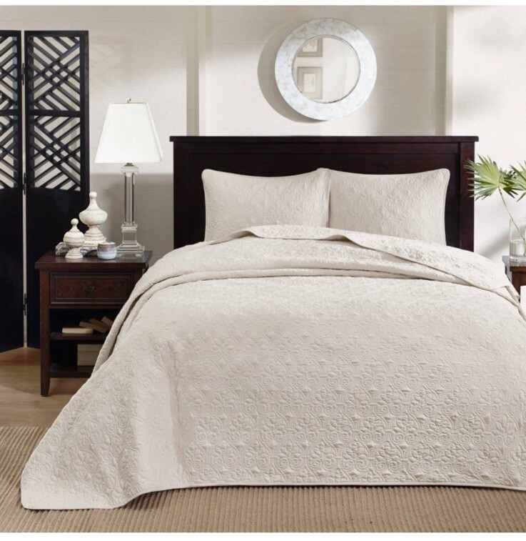 The Madison Park Vancouver Reversible 3pc Bedspread Set in Ivory is a luxurious and stylish addition to any bedroom. This King Size set includes a bedspread and two pillow shams, all made with high-quality materials for a comfortable and cozy feel. The reversible design allows for versatile styling options, making it easy to update your room with a fresh look. Perfect for adding a touch of elegance to your bedroom decor, this set is sure to enhance your sleep experience. Madison Park Vancouver Reversible 3pc Bedspread Set Ivory - King Size New