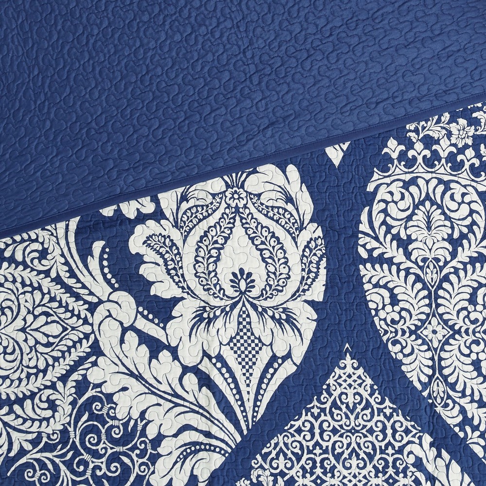 Store Categories Store Categories Bedding Comforters Decorative Pillows Duvet Covers Quilts & Coverlets Sheets Blankets & Throws Mattress Pads Pillows Home Decor Window Treatments Wall Art Home Accents Furniture Beds Dining Seating Ottomans & Benches Accent Chairs Accent Tables Dining Tables Sofas Bath Bath Robes Shower Curtains Towels Bath Rugs Bath Accessories Apparel Pajama Sets Nightgowns Rugs Rugs & Carpets Lighting Lamp Pendant Other Product Overview Details DESCRIPTION The Madison Park Vienna 6 Piece Reversible Quilt Set offers an eye-catching update to your bedroom decor. A beautifully intricate damask pattern is flaunted across the quilted quilt and shams, for a chic transitional look. The solid reverse perfectly complements the top of the bed, while the flange border adds a charming accent to the quilt. Three decorative pillows with embroidered details and fabric manipulation complete the quilt set. Made from 100% cotton sateen, this bedding set is OEKO-TEX certified, meaning it does not contain any harmful substances or chemicals to ensure quality comfort and wellness. FEATURES • Transitional 6 piece reversible cotton quilt set • Features Intricate damask design in black and white contrasted colors with solid black color on the reverse • All over vermicilli quilting on quilt and shams • Embroidery and fabric manipulation details on decorative pillows • Set includes 1 quilt, 2 matching shams and 3 decorative pillows • Oeko-Tex Certified, includes no harmful substances or chemicals • Machine washable for easy care MATERIAL Quilt/Sham:Cotton, printed Reverse/Sham: Cotton/Polyester crossweave reverse Quilt Fill: 90% Cotton, 10% Polyester filling Pillows: Cotton/Polyester crossweave with Polyester filling Available Sizes: Full/Queen Quilt Set includes: 1 Quilt: 90"W x 90"L 2 Standard Shams: 20"W x 26"L 1 Decorative Pillow: 18"W x 18"L 1 Decorative Pillow: 12"W x 16"L 1 Decorative Pillow: 16"W x 16"L King/California King Quilt Set includes: 1 Quilt: 104"W x 94"L 2 King Shams: 20"W x 36"L 1 Decorative Pillow: 18"W x 18"L 1 Decorative Pillow: 12"W x 16"L 1 Decorative Pillow: 16"W x 16"L Bedding Comforters Decorative Pillows Duvet Covers Quilts & Coverlets Sheets Blankets & Throws Mattress Pads Pillows Home Decor Window Treatments Wall Art Home Accents Furniture Beds Dining Seating Ottomans & Benches Accent Chairs Accent Tables Dining Tables Sofas Bath Bath Robes Shower Curtains Towels Bath Rugs Bath Accessories Rugs Rugs & Carpets Lighting Lamp Pendant Product Overview Product Details DESCRIPTION The Madison Park Vienna 6 Piece Reversible Quilt Set offers an eye-catching update to your bedroom decor. A beautifully intricate damask pattern is flaunted across the quilted quilt and shams, for a chic transitional look. The solid reverse perfectly complements the top of the bed, while the flange border adds a charming accent to the quilt. Three decorative pillows with embroidered details and fabric manipulation complete the quilt set. Made from 100% cotton sateen, this bedding set is OEKO-TEX certified, meaning it does not contain any harmful substances or chemicals to ensure quality comfort and wellness. FEATURES • Transitional 6 piece reversible cotton quilt set • Features Intricate damask design in black and white contrasted colors with solid black color on the reverse • All over vermicilli quilting on quilt and shams • Embroidery and fabric manipulation details on decorative pillows • Set includes 1 quilt, 2 matching shams and 3 decorative pillows • Oeko-Tex Certified, includes no harmful substances or chemicals • Machine washable for easy care MATERIAL Quilt/Sham:Cotton, printed Reverse/Sham: Cotton/Polyester crossweave reverse Quilt Fill: 90% Cotton, 10% Polyester filling Pillows: Cotton/Polyester crossweave with Polyester filling Available Sizes: Full/Queen Quilt Set includes: 1 Quilt: 90"W x 90"L 2 Standard Shams: 20"W x 26"L 1 Decorative Pillow: 18"W x 18"L 1 Decorative Pillow: 12"W x 16"L 1 Decorative Pillow: 16"W x 16"L King/California King Quilt Set includes: 1 Quilt: 104"W x 94"L 2 King Shams: 20"W x 36"L 1 Decorative Pillow: 18"W x 18"L 1 Decorative Pillow: 12"W x 16"L 1 Decorative Pillow: 16"W x 16"L