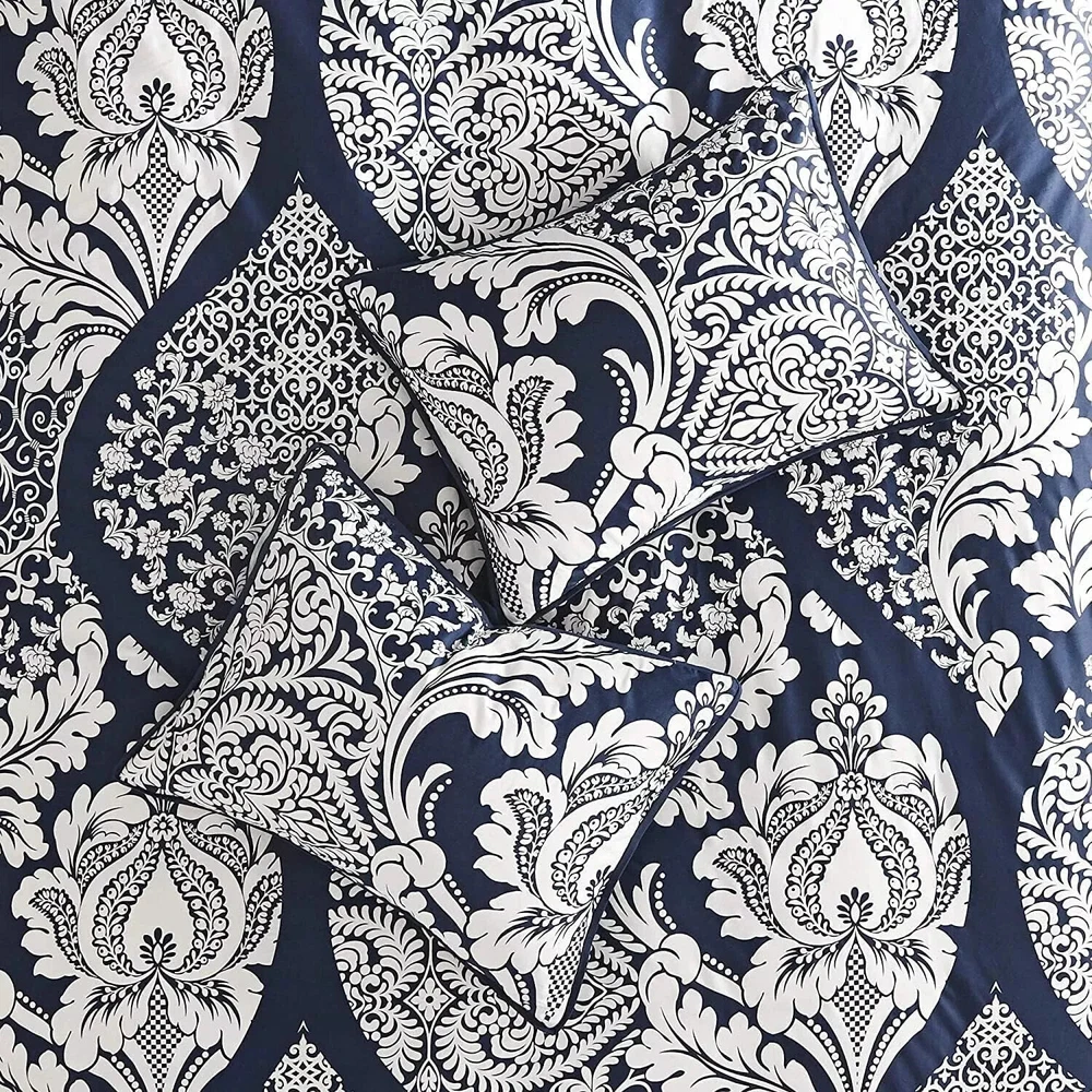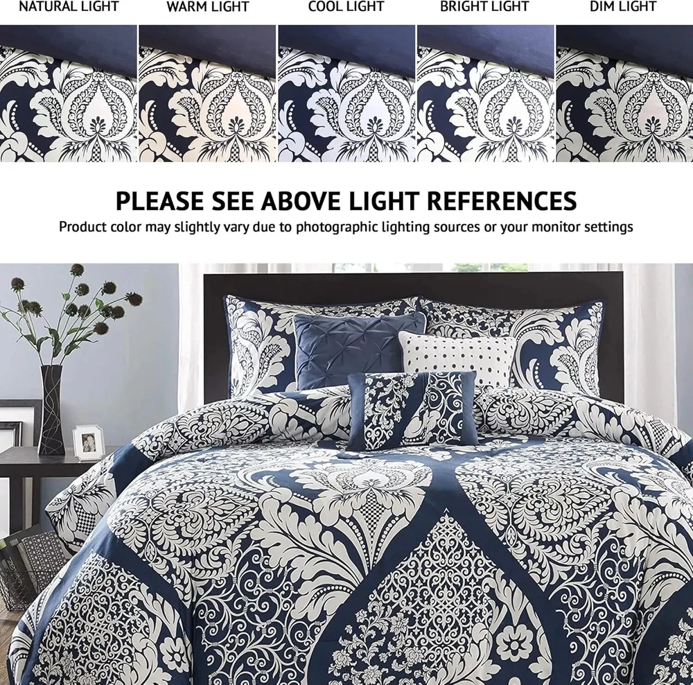 Item specifics Condition New with tags: A brand-new, unused, and unworn item (including handmade items) in the original ... Read more about the condition Brand Madison PARK Type Comforter Set Size Queen Color Vienna Indigo Set Includes Bed Skirt, Comforter, Decorative Pillow, Sham Room Bedroom UPC 675716863647 Item description from the seller Size Queen Included Components Pillow Sham, Comforter, Pillow Cover, Bed Skirt, Pillow Color Vienna Indigo Style Transitional Floral Brand Madison Park About this item Cotton Blend Printed 200 thread count cotton sateen Comforter/Sham: 200tc cotton sateen, printed, 180TC crossweave reverse, 270g/m2 polyester filling Bedskirt: 180TC crossweave Pillow: 180TC cotton crossweave cover, polyester filling 1 Comforter:90x90" 2 Standard Shams:20x26+2" (2) 1 Bedskirt:60x80+15" 3 Dec Pillows:18x18"/16x16"/12x16" MACHINE WASH COLD, GENTLE CYCLE, AND SEPARATELY. DO NOT BLEACH. TUMBLE DRY LOW, REMOVE PROMPTLY, DO NOT IRON. IF THERE IS NO FREE MOVEMENT IN THE WASHER OR DRYER, USE LARGE CAPACITY COMMERCIAL WASHER/DRYER.
