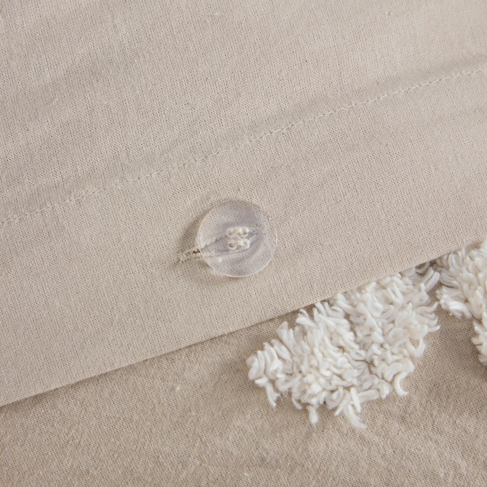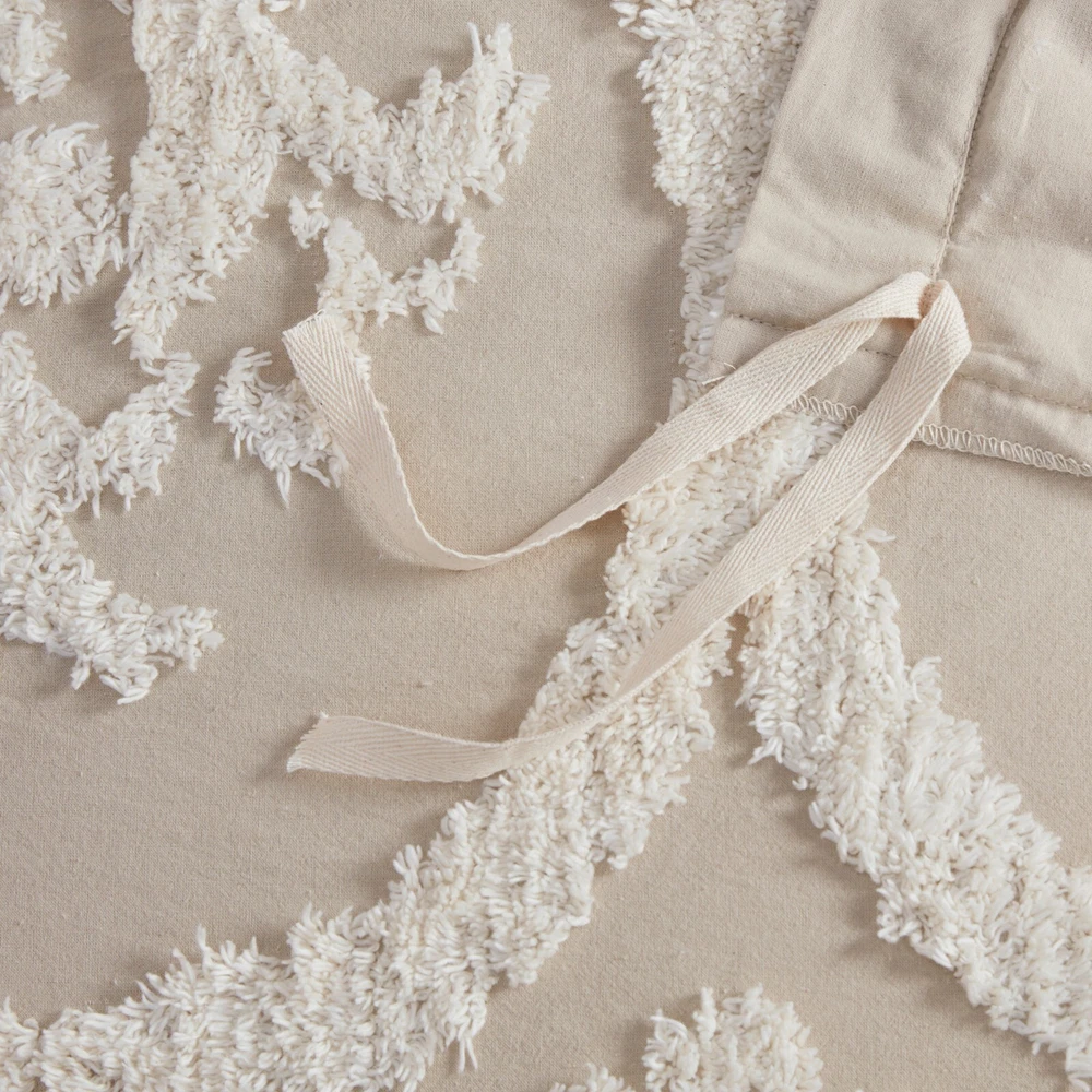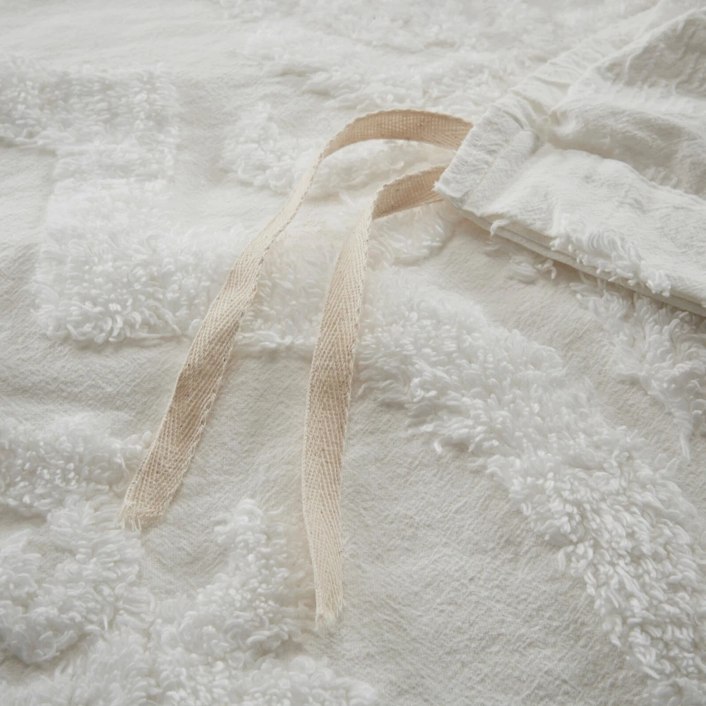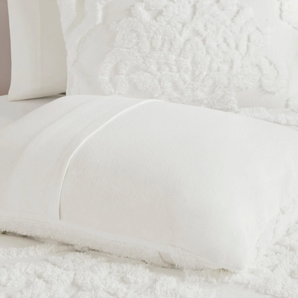 Store Categories Store Categories Bedding Comforters Decorative Pillows Duvet Covers Quilts & Coverlets Sheets Blankets & Throws Mattress Pads Pillows Home Decor Window Treatments Wall Art Home Accents Furniture Beds Dining Seating Ottomans & Benches Accent Chairs Accent Tables Dining Tables Sofas Bath Bath Robes Shower Curtains Towels Bath Rugs Bath Accessories Apparel Pajama Sets Nightgowns Rugs Rugs & Carpets Lighting Lamp Pendant Other Product Overview Details DESCRIPTION The Madison Park Viola 3 Piece Tufted Cotton Chenille Damask Duvet Cover Set offers the perfect cottage touch to your bedroom décor. A tufted chenille damask design is beautifully displayed on the 100% cotton duvet cover and matching shams, for a soft shabby chic look. Machine washable for easy care, this bedding set is OEKO-TEX certified, meaning it does not contain any harmful substances or chemicals to ensure quality comfort and wellness. A button closure secures a comforter insert within the duvet cover and inside corner ties prevent it from shifting (insert is NOT included). Due to the nature of the chenille fabric, some shedding will occur naturally in the first 3-4 washes. FEATURES • Shabby chic cotton chenille damask duvet cover set in white • Set includes duvet cover and 2 matching shams • Inside corner ties to secure the insert, button closure • Duvet cover does not include insert • Oeko-Tex Certified, includes no harmful substances or chemicals (# 19.HIN.73178) • Machine washable • Due to the nature of the chenille fabric, some shedding will occur naturally in the first 3-4 washes MATERIAL Cotton chenille with tufted technique, cotton solid reverse Available Sizes: Full/Queen Duvet Cover Set includes: 1 Duvet Cover: 90"W x 90"L 2 Standard Shams: 20"W x 26"L King/California King Duvet Cover Set includes: 1 Duvet Cover: 104"W x 92"L 2 King Shams: 20"W x 36"L Bedding Comforters Decorative Pillows Duvet Covers Quilts & Coverlets Sheets Blankets & Throws Mattress Pads Pillows Home Decor Window Treatments Wall Art Home Accents Furniture Beds Dining Seating Ottomans & Benches Accent Chairs Accent Tables Dining Tables Sofas Bath Bath Robes Shower Curtains Towels Bath Rugs Bath Accessories Rugs Rugs & Carpets Lighting Lamp Pendant Product Overview Product Details DESCRIPTION The Madison Park Viola 3 Piece Tufted Cotton Chenille Damask Duvet Cover Set offers the perfect cottage touch to your bedroom décor. A tufted chenille damask design is beautifully displayed on the 100% cotton duvet cover and matching shams, for a soft shabby chic look. Machine washable for easy care, this bedding set is OEKO-TEX certified, meaning it does not contain any harmful substances or chemicals to ensure quality comfort and wellness. A button closure secures a comforter insert within the duvet cover and inside corner ties prevent it from shifting (insert is NOT included). Due to the nature of the chenille fabric, some shedding will occur naturally in the first 3-4 washes. FEATURES • Shabby chic cotton chenille damask duvet cover set in white • Set includes duvet cover and 2 matching shams • Inside corner ties to secure the insert, button closure • Duvet cover does not include insert • Oeko-Tex Certified, includes no harmful substances or chemicals (# 19.HIN.73178) • Machine washable • Due to the nature of the chenille fabric, some shedding will occur naturally in the first 3-4 washes MATERIAL Cotton chenille with tufted technique, cotton solid reverse Available Sizes: Full/Queen Duvet Cover Set includes: 1 Duvet Cover: 90"W x 90"L 2 Standard Shams: 20"W x 26"L King/California King Duvet Cover Set includes: 1 Duvet Cover: 104"W x 92"L 2 King Shams: 20"W x 36"L