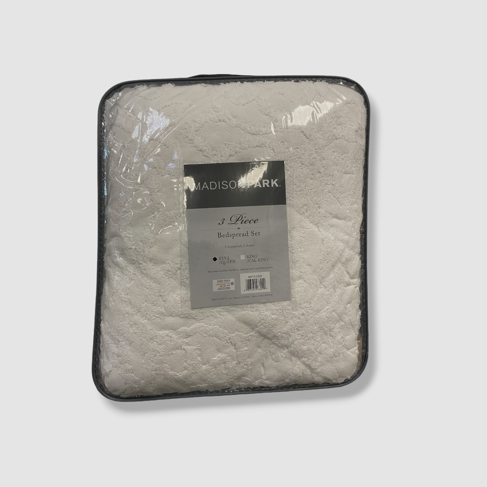 Madison Park White 3 Piece Tufted Cotton Chenille Bedspread Set Full/Queen Description bedspread, 2 standard shams bedspread:102" x 118", standard sham (2):20" x 26" + 2" Solid Due to the nature of the chenille fabric, some shedding will occur naturally in the first 3-4 washes. Colors: Solid white 100% cotton chenille; N/A Machine Washable Imported About Us We sell only 100% authentic clothing from new with tags to gently used. We have a 100% authentic or money back guarantee on every item we sell. Items are listed daily so make sure to put us on your favorite! We have been in business for over 10 years selling tens of thousands of designer items. We strive to meet your designer needs at a quality price! Payment Shipping Returns Payment accepted via paypal, credit/debit card. Shipping is usually within 24 hours of purchase (M-F). Super fast service. Tracked delivery. 100% satisfaction guaranteed. Please review our eBay return policy for more details.