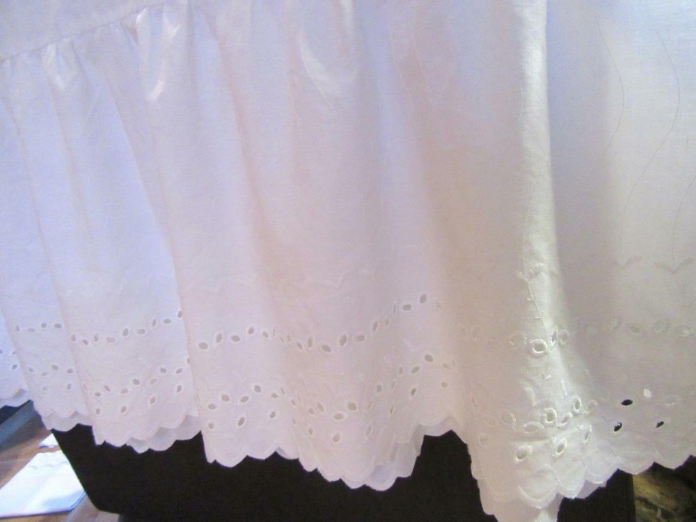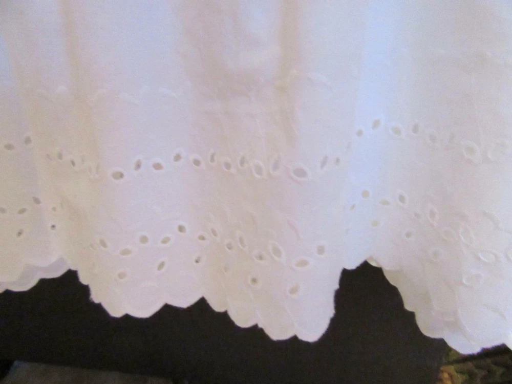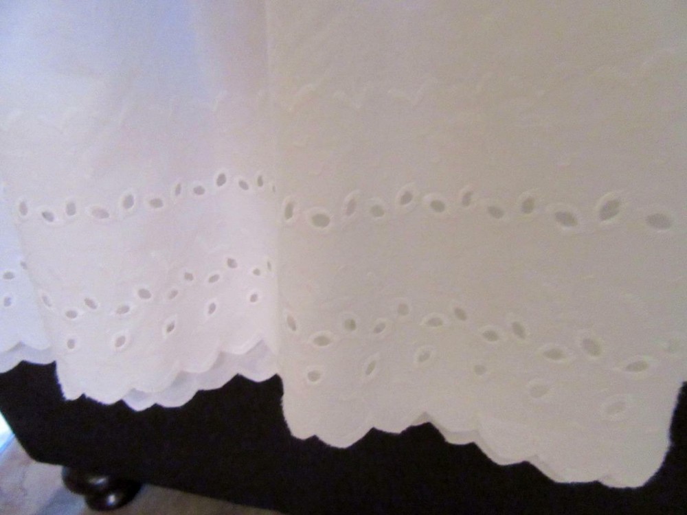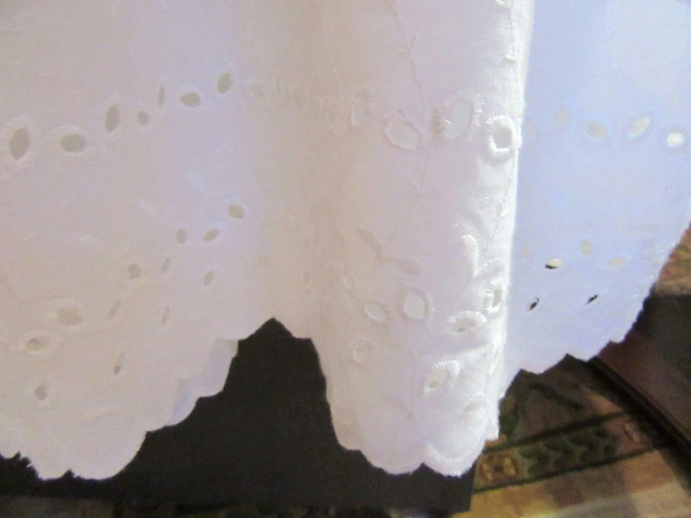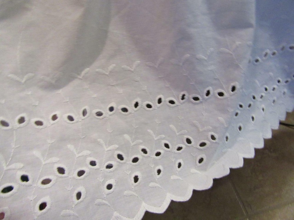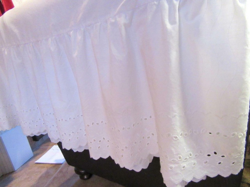 Madison Park White Embroidered Eyelet Lace King Bedskirt Platform top 14" Drop Madison Park White Embroidered Eyelet Lace King Bedskirt Platform top 14" Drop Click images to enlarge Description Offering a Simply Gorgeous Madison Park King Bed Skirt featuring Embroidered Eyelet Lace trim with a scalloped bottom. The Embroidered Eyelet Lace will be fully gathered from a platform top with a drop of 14". The color will be a Crisp White. The ends are Not Split so this one will work with Hollywood style beds or bedframes ! Such a nice accent! It will remains in Very Good Condition. No stains, tears or repairs to report. I have freshly laundered to assure you of thread quality. (I did not press due to wrinkling in shipping. I will give you lots of photos to view the pattern. As a Thank You for Multiply Purchases, we gladly COMBINE SHIPPING with you paying only Actual Shipping Cost! As always, we have a Clean, Smoke and Pet Free Environment. Be sure to check out our other items at our store, Southern Memories of Mine! INTERNATIONAL BUYERS WELCOME Payment PAYPAL Only. Payment is requested within 3 days of auctions close unless prior arrangements have been made. Be sure of your Bid as I do NOT Cancel AUCTIONS after they end! Ebay records a bid as a contract! If you plan on being out of the office or on vacation please drop me a line and I will be more than happy to work with you! If payment is not received, appropriate actions will be taken through Ebay and item will be relisted . Shipping SAME DAY SHIPPING! Combined shipping is available on multiple purchases. Please wait for the combined invoice prior to sending payment. I ship worldwide, please email for exact shipping cost. I ship USPS, first class and priority, FedEx, or method of your choice. As you can see by my feedback, my customers are very satisfied by not only the merchandise I offer but the speed of shipping and packing of items. Also, I will send you an email once your item has been shipped so that you know to expect your purchase. Terms of Sale Notify me immediately if you need to return. Ebay states: Return shipping is to be paid by the buyer. Returned items should be in the condition they were shipped, that is unused, unwashed, original packaging/tags included, unopened, etc. Note a 20% restocking will be deducted from the cost of the item. Please note items are to be returned in 14 days. If you have any dissatisfaction with our transaction, please contact us to explore possible resolutions before leaving feedback. We strive to make our customers happy and want our feedback to reflect the final outcome. About Us Most of our items are from our personal collections, with some finds from local estate sales. Items offered have been cherished over the years but we are now passing them onto you. We strive to describe each item to the best of our ability. I thoroughly inspect each piece and describe any imperfections or flaws. We look forward to receiving a 5 Star Rating. Anything less, we have failed ourselves as well as you. We have a Clean, PET and SMOKE FREE Home! Be sure to check out my EBAY STORE for more great finds! Get images that make Supersized seem small. Showcase your items with Auctiva's Listing Templates! THE simple solution for eBay sellers. Track Page Views With Auctiva's FREE Counter