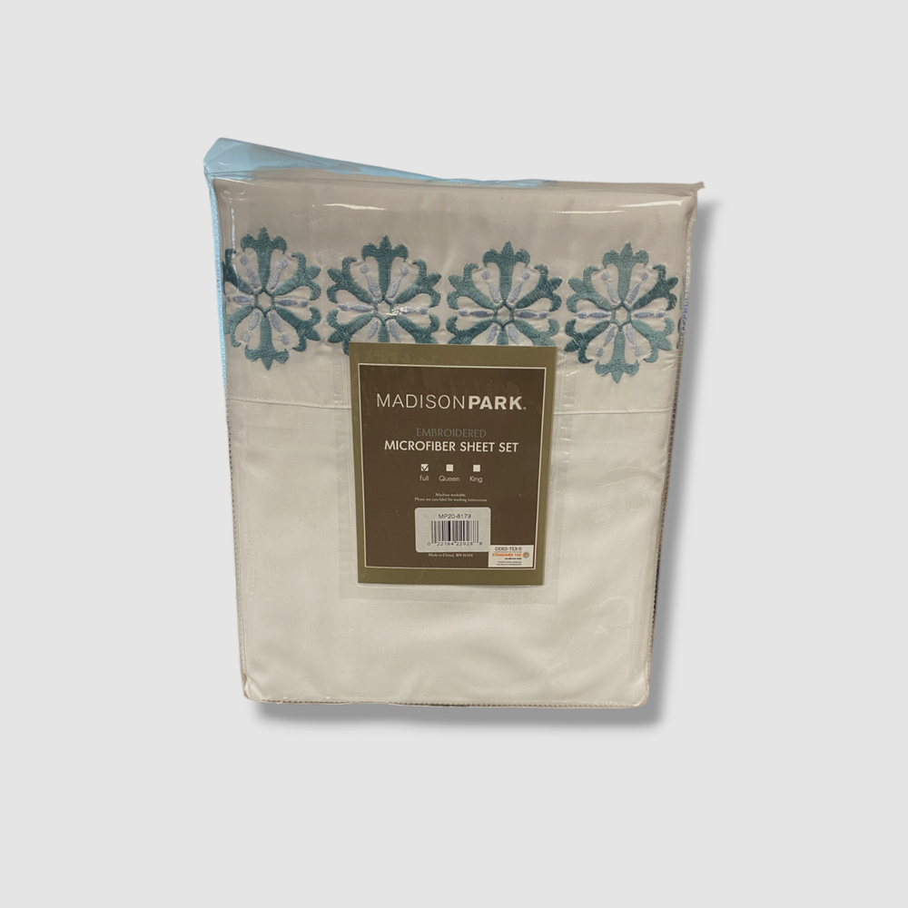 Madison Park White Full 4pc Embroidered Microfiber Sheet Set Description Flat sheet dimensions - 81" W x 96" L Fitted sheet dimensions - 54" W x 75" L + 14" D Standard pillowcases dimensions - 20" W x 30" L Product weight- 2.54 lbs Set includes - 1 flat sheet, 1 fitted sheet, 2 Standard pillowcases Embroidered hem brings a stylish pop of color to your bedroom Ultra soft brushed microfiber Machine washable for easy care Benzoyl peroxide resistant Embroidery on flat sheet and pillowcase hem face side only Fitted sheet pocket 14" deep, fully elasticized for better coverage, fits up to 16" mattresses Includes no harmful substances or chemicals Polyester Microfiber Machine Washable Imported About Us We sell only 100% authentic clothing from new with tags to gently used. We have a 100% authentic or money back guarantee on every item we sell. Items are listed daily so make sure to put us on your favorite! We have been in business for over 10 years selling tens of thousands of designer items. We strive to meet your designer needs at a quality price! Payment Shipping Returns Payment accepted via paypal, credit/debit card. Shipping is usually within 24 hours of purchase (M-F). Super fast service. Tracked delivery. 100% satisfaction guaranteed. Please review our eBay return policy for more details.