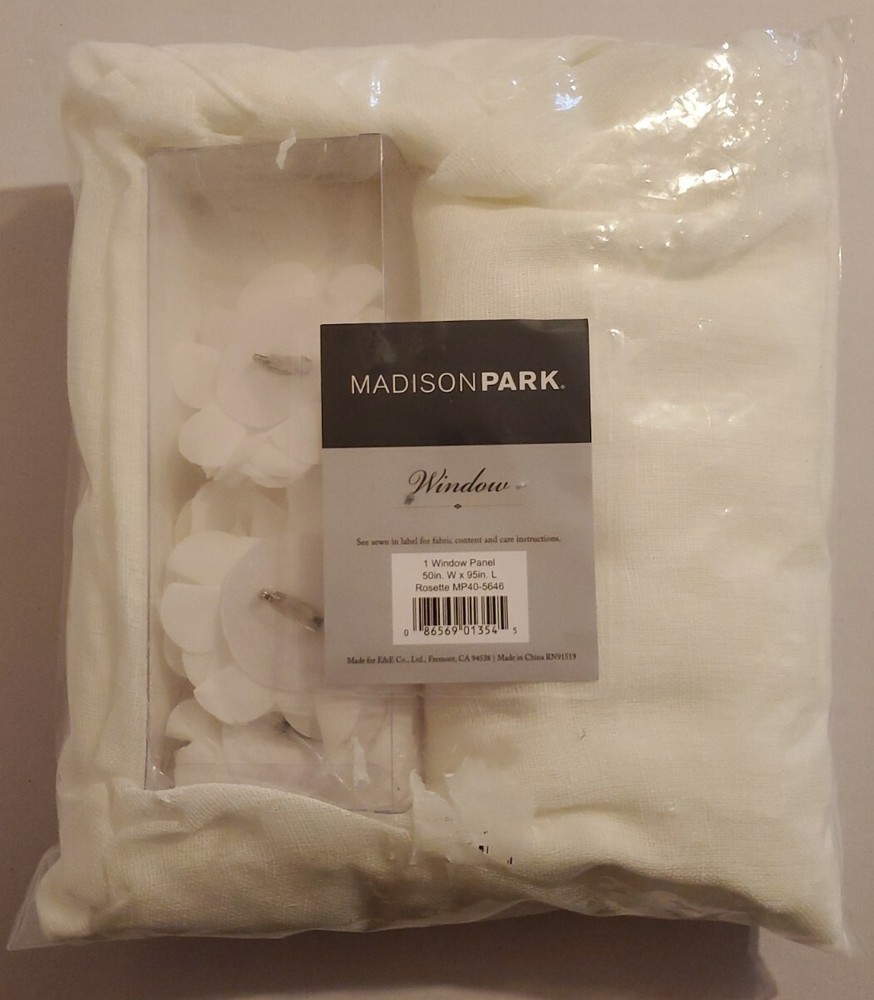 Madison Park White Rosette Twist Tab Top Window Panel w/Flower 50”W x 95”L. 1 window panel. Condition is "New". Shipped with USPS Priority Mail.