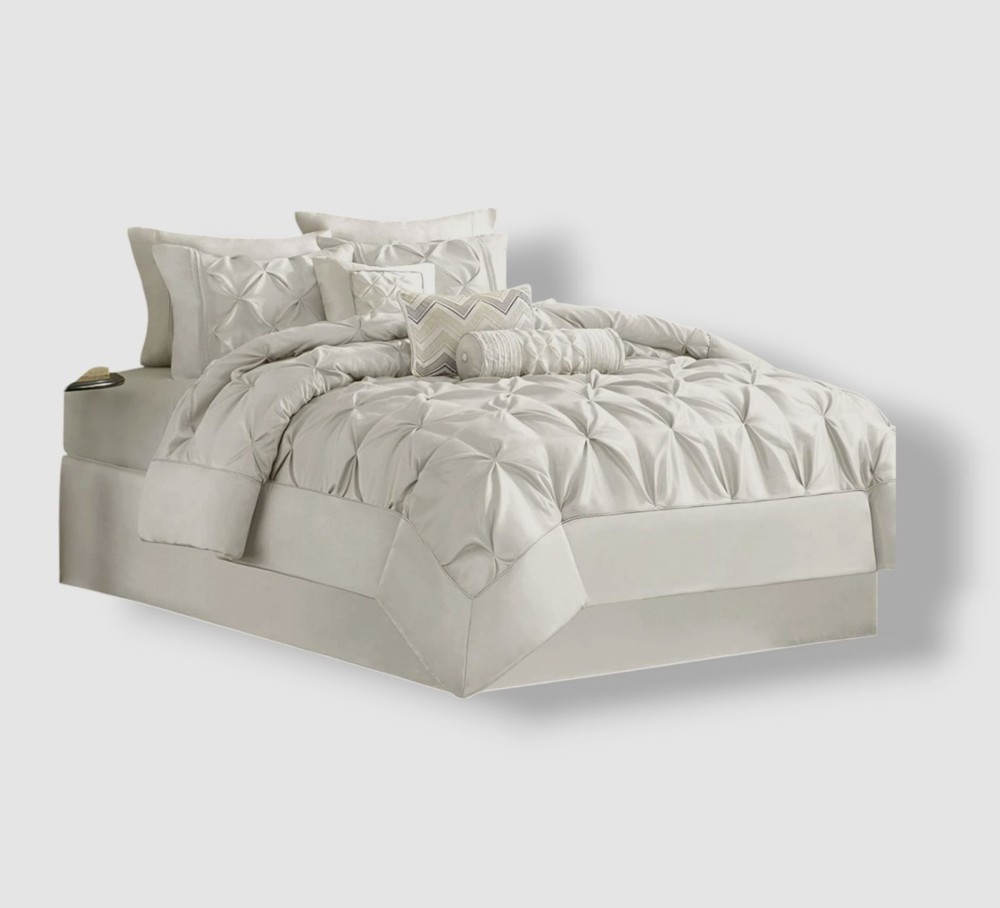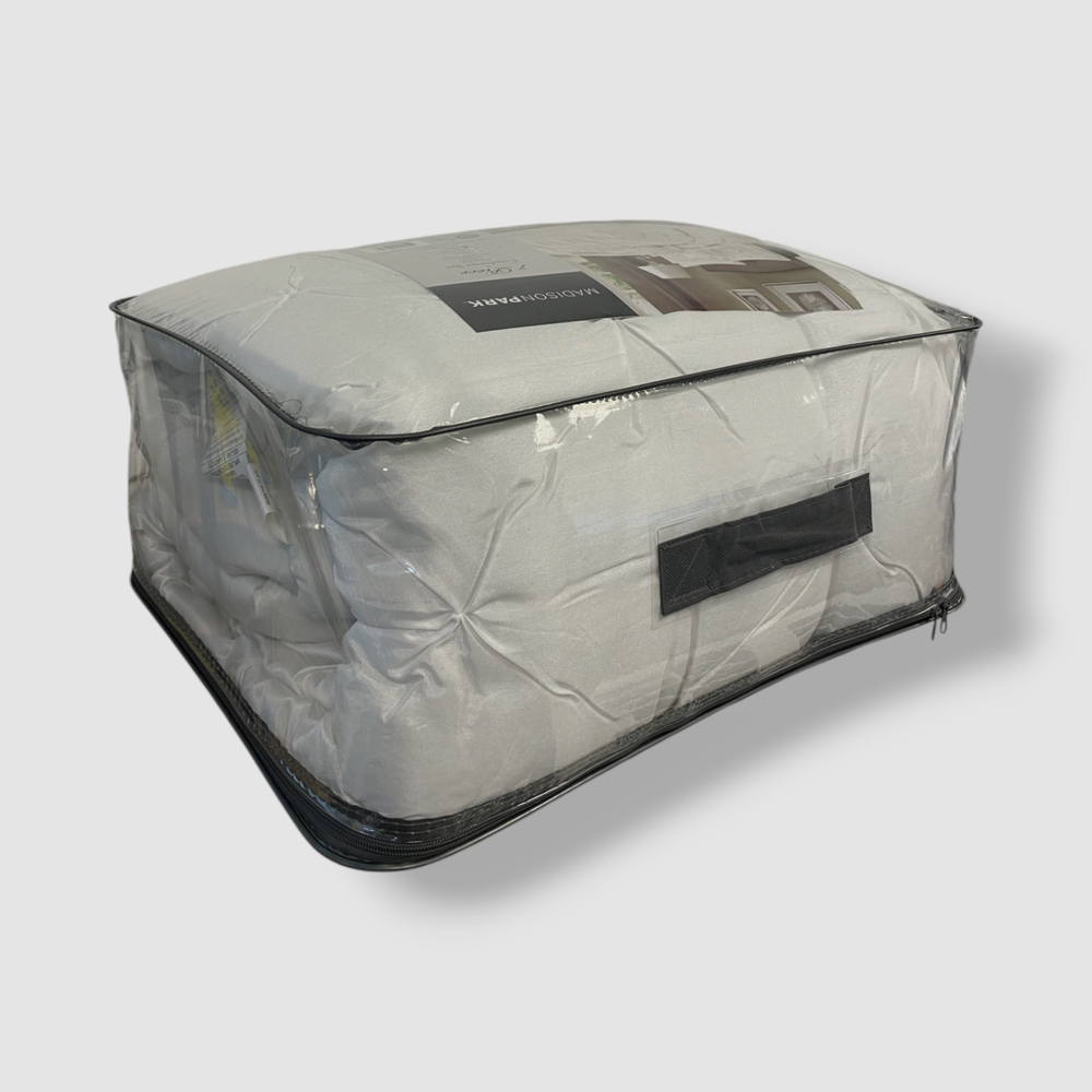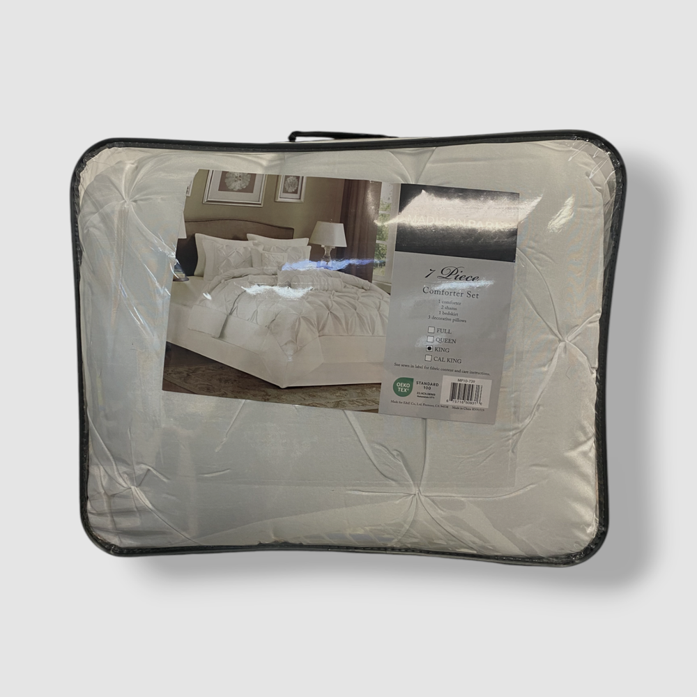 Madison Park White Wilma 7-Piece Comforter Set, King Size Description Set includes: comforter (104" x 92"), bed skirt (78" x 80" + 15"), two king shams (20" x 36") and three decorative pillows (18" x 18", 12" x 18", 6.5" x 18") Pleated designs Polyester Machine washable Imported About Us We sell only 100% authentic clothing from new with tags to gently used. We have a 100% authentic or money back guarantee on every item we sell. Items are listed daily so make sure to put us on your favorite! We have been in business for over 10 years selling tens of thousands of designer items. We strive to meet your designer needs at a quality price! Payment Shipping Returns Payment accepted via paypal, credit/debit card. Shipping is usually within 24 hours of purchase (M-F). Super fast service. Tracked delivery. 100% satisfaction guaranteed. Please review our eBay return policy for more details.